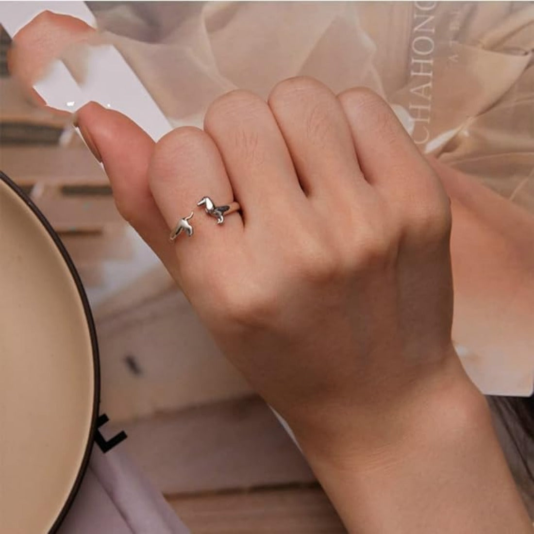 Rockyu ダックスフンドリング シルバー925 フリーサイズ 可愛い犬モチーフ