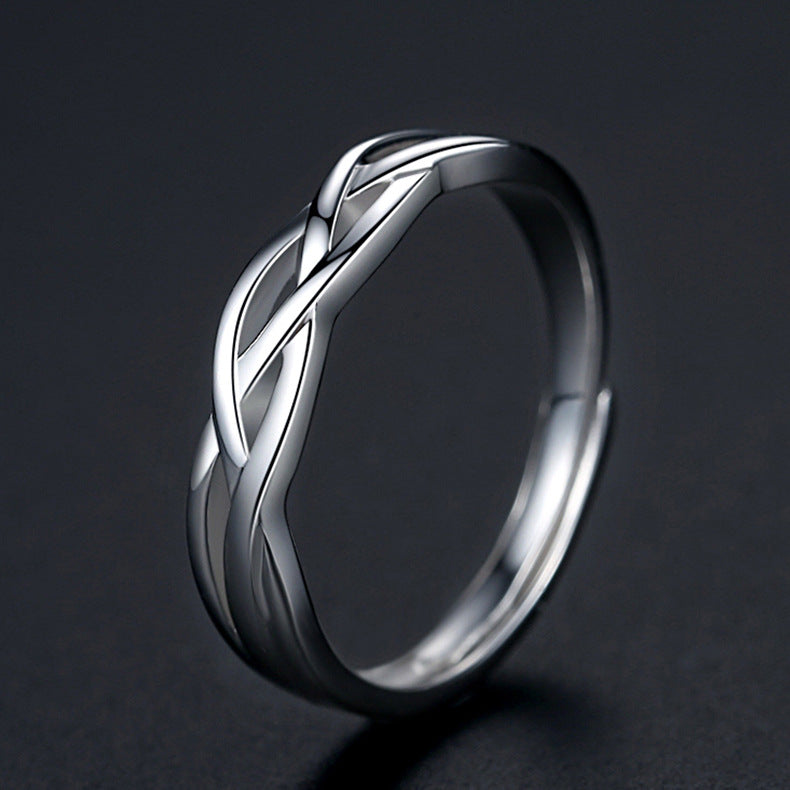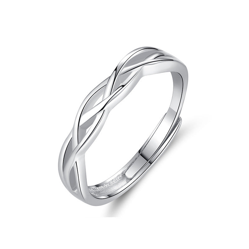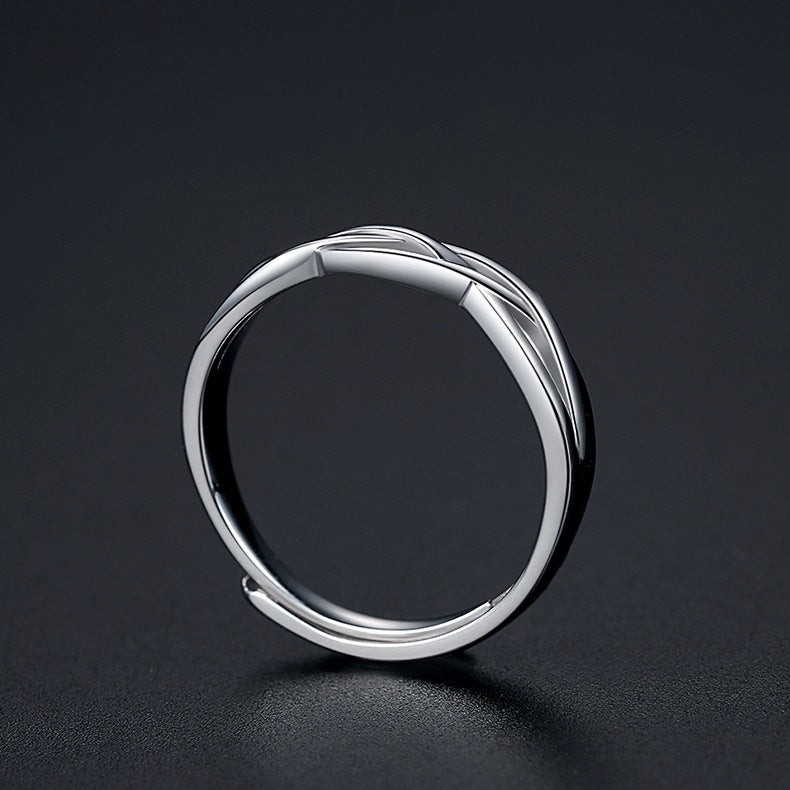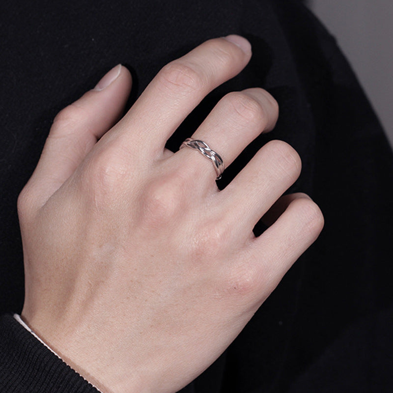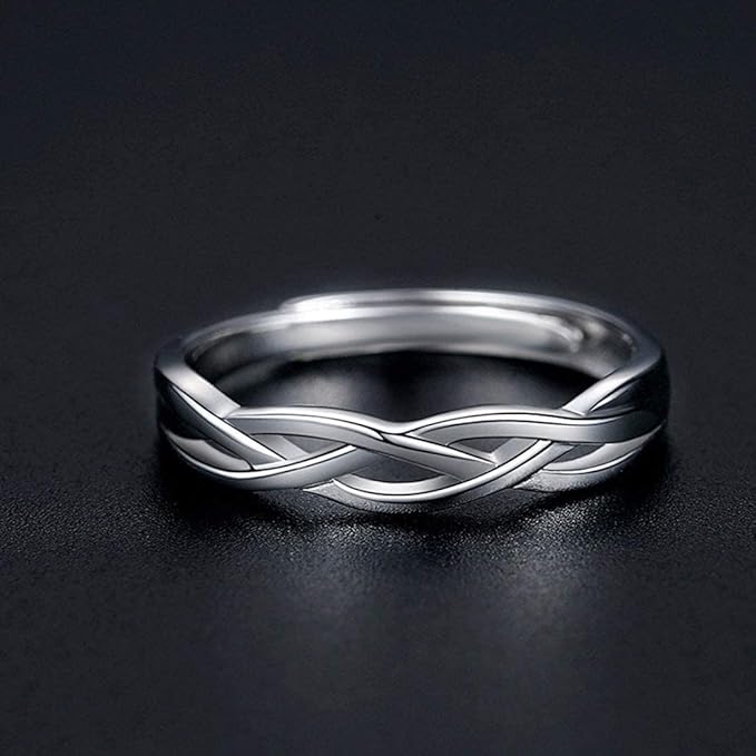 Rockyu メンズリング S925純銀 開口デザイン ツイスト編み風 シンプル指輪