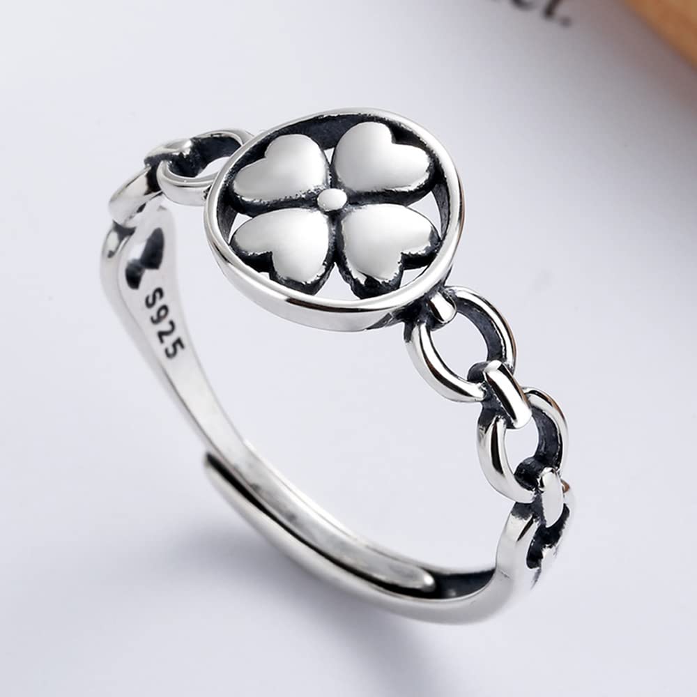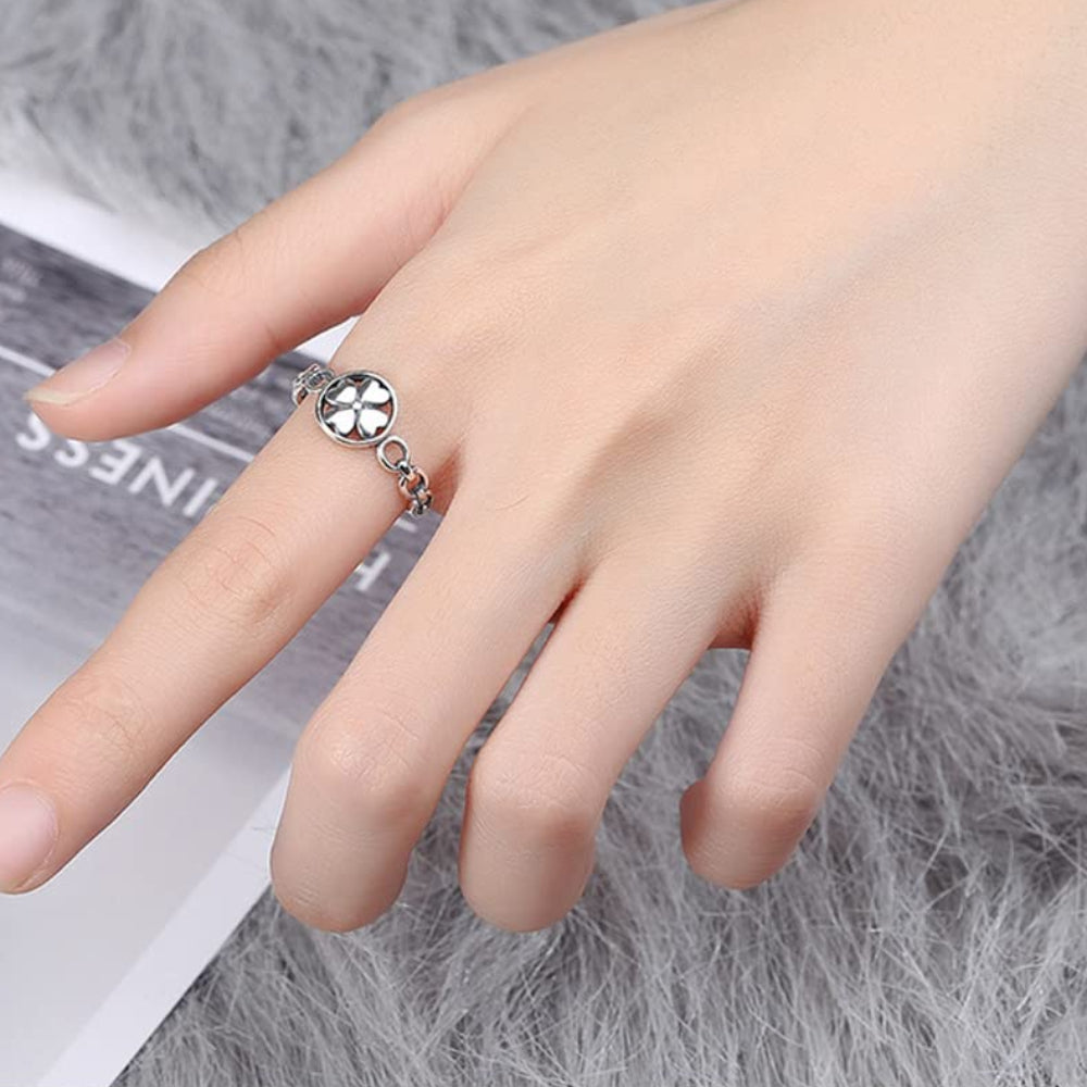 Rockyu フラワーモチーフリング レディース シルバー925 花デザイン フリーサイズ