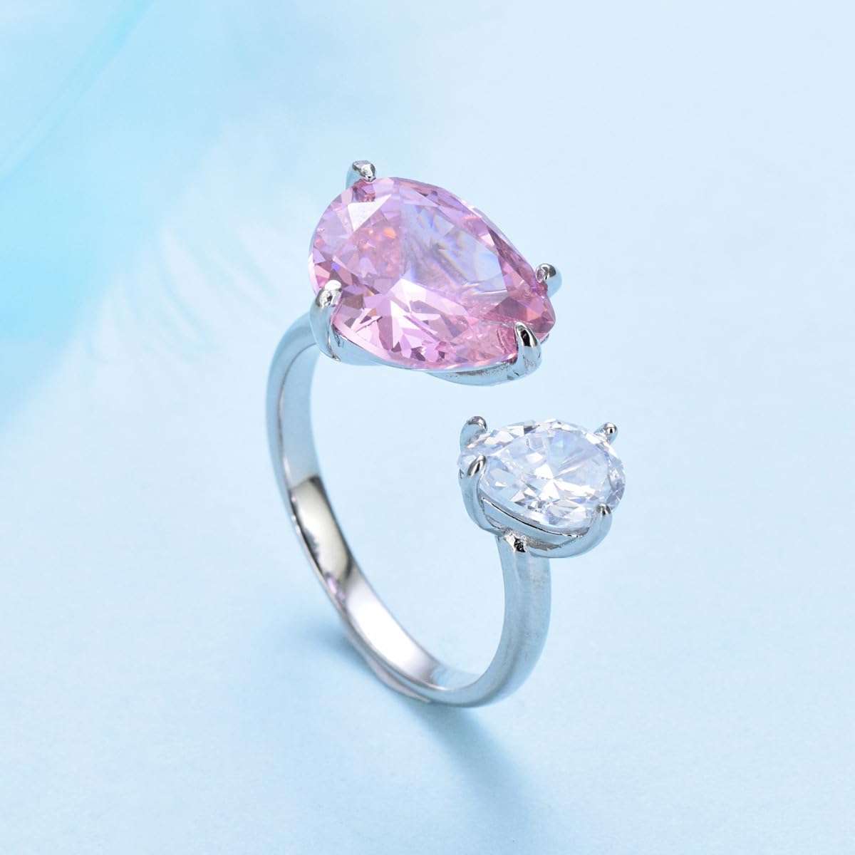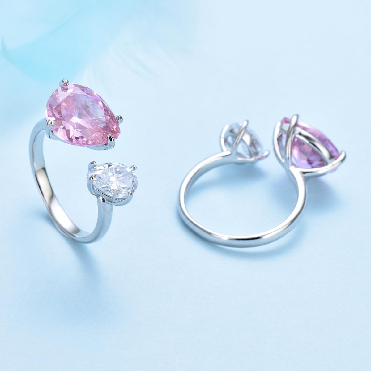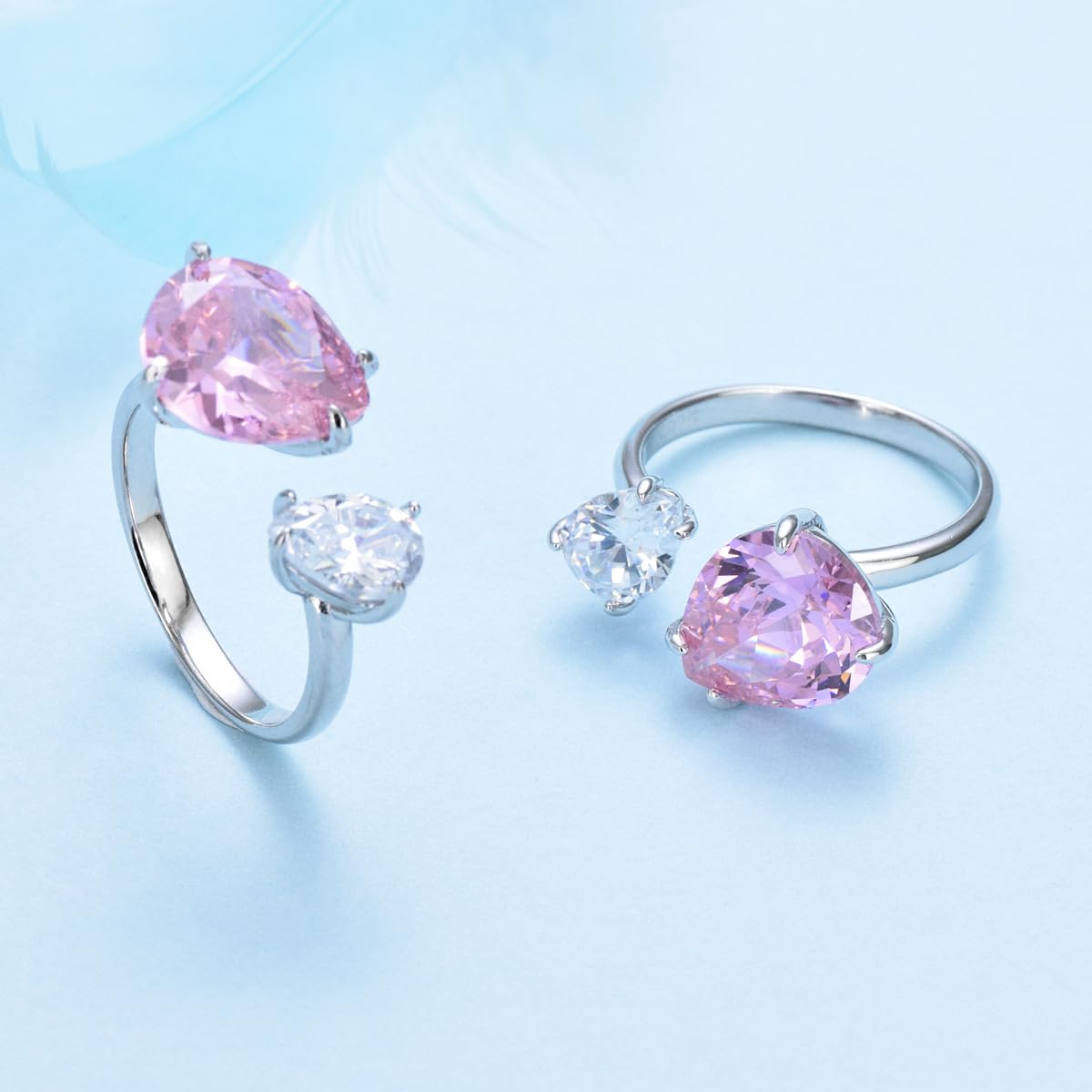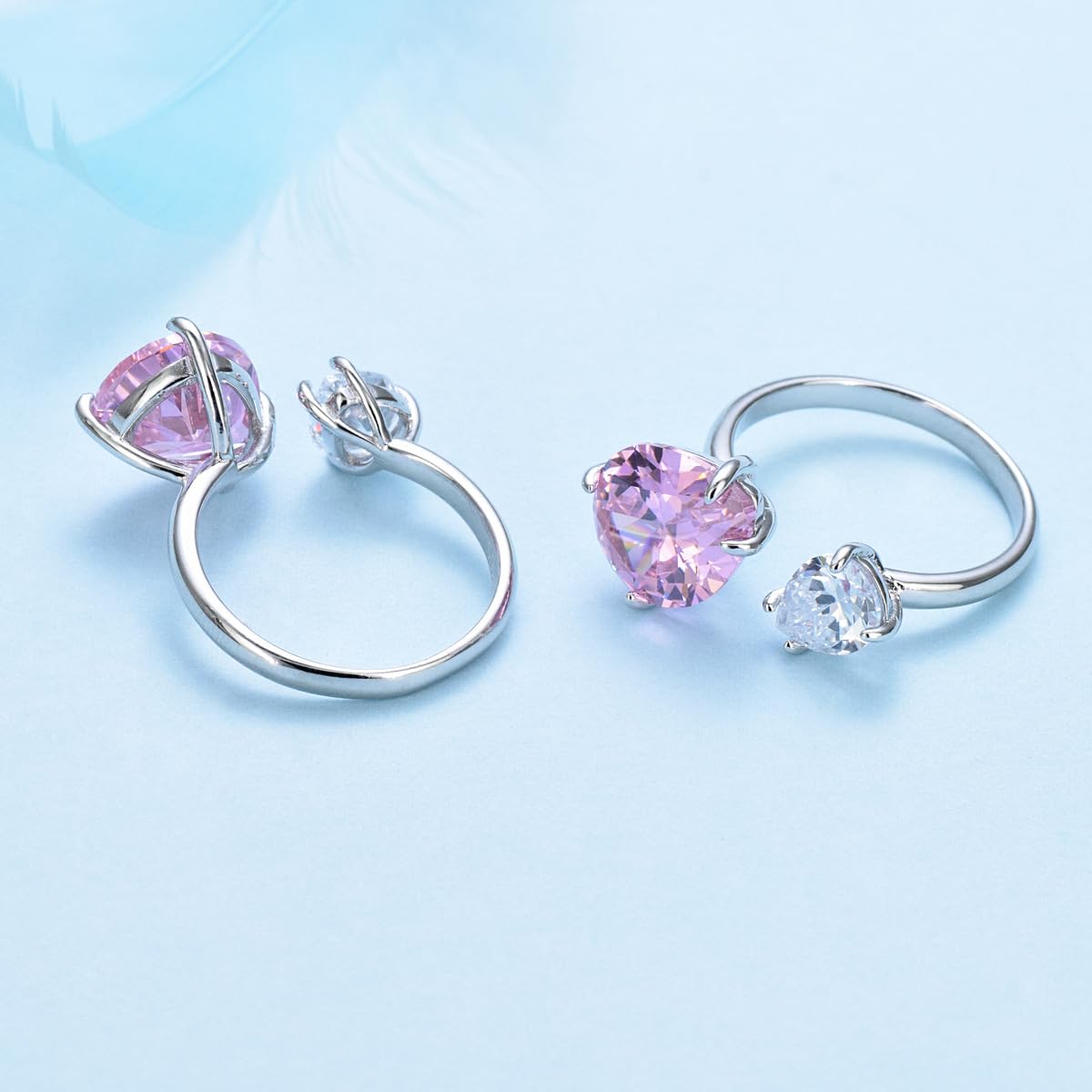 Rockyu レディースリング|シルバー925&大粒ピンクジルコニア ハートオープン指輪Rinwo-J81-銀ピンク