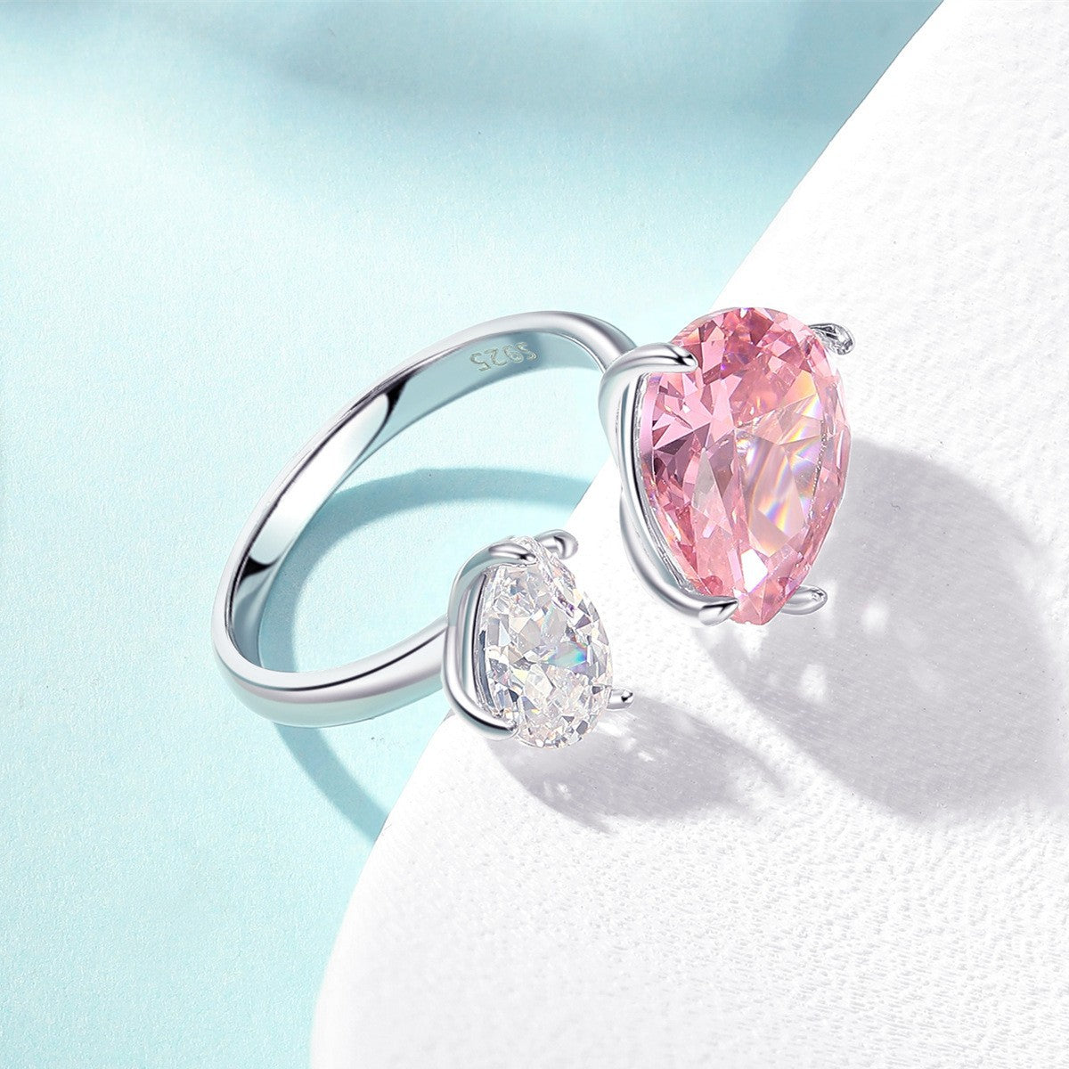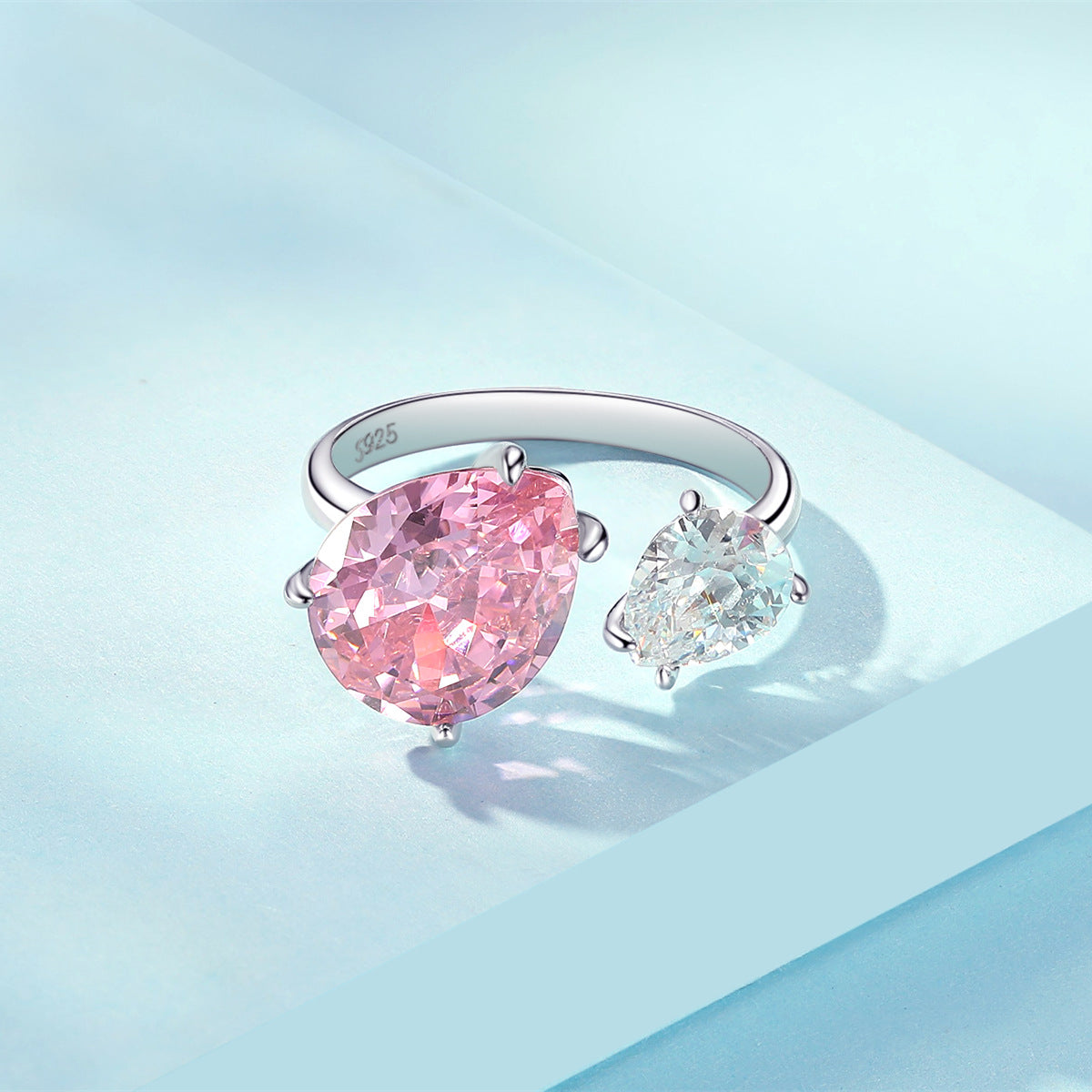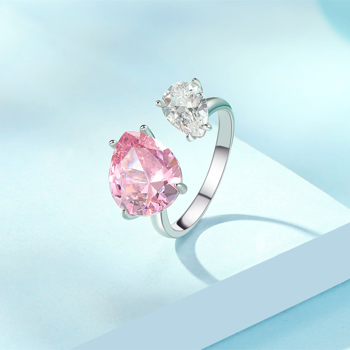 指先に恋が咲く──Rockyuのジルコニアハートリングは、見た瞬間にキュンとするピンクと透明の涙型ストーンが主役。