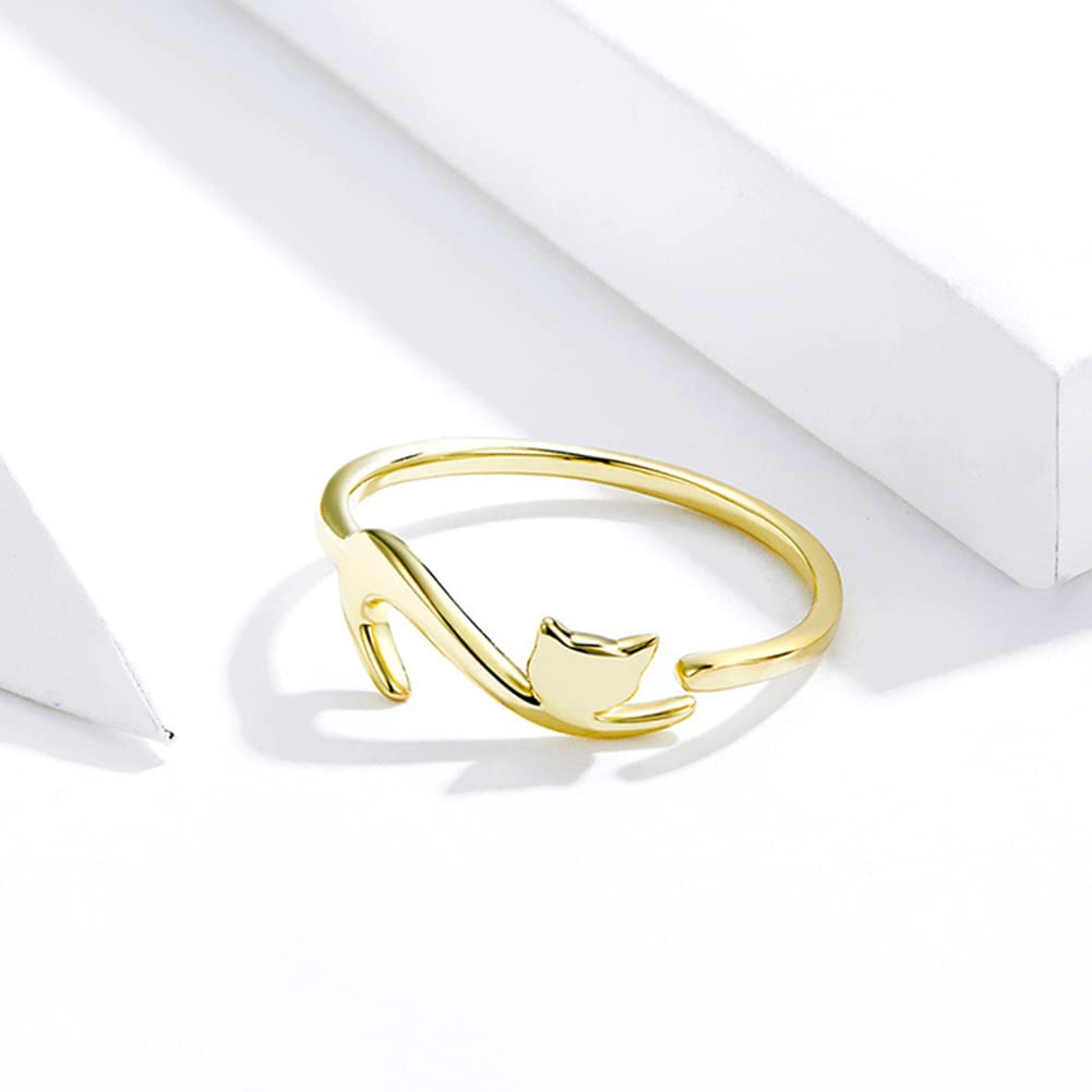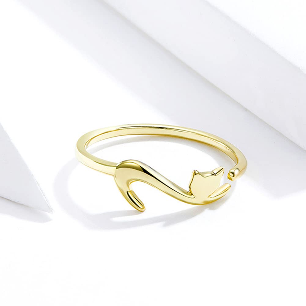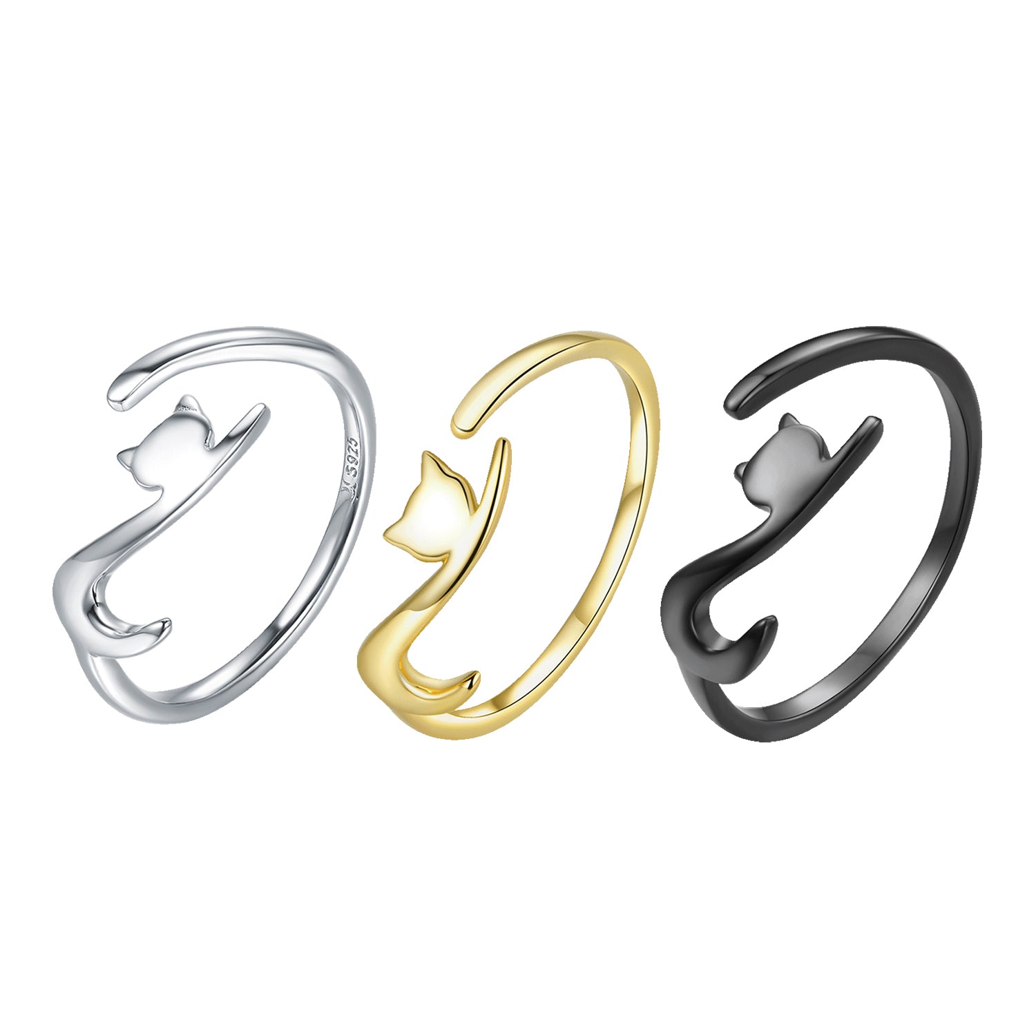 Rockyu 猫リング レディース シルバー925 フリーサイズ シンプル 可愛い ネコモチーフ 金属アレルギー対応