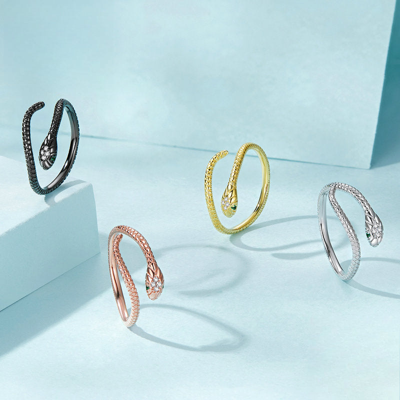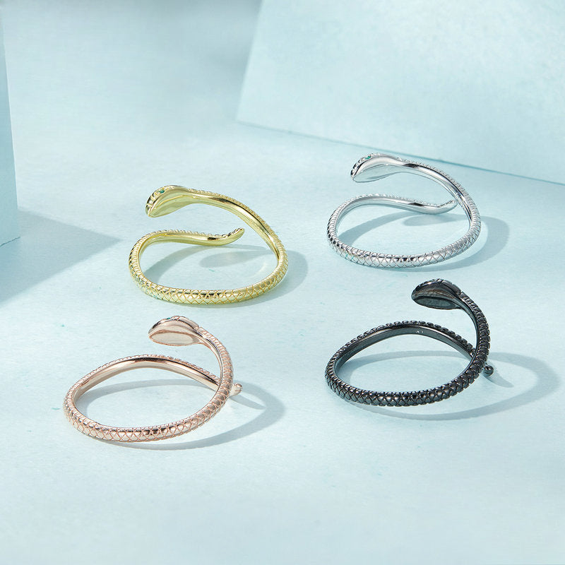 目が合った瞬間、惹きつけられる。Rockyuのスネークリングは、しなやかに指に巻きつく蛇の姿を繊細に再現した大人のためのアクセサリー。美しく施されたウロコ模様と、目元のきらりと光るストーンが、まるで生きているかのような存在感を放ちます。