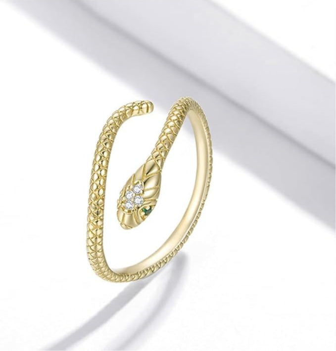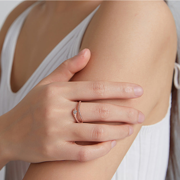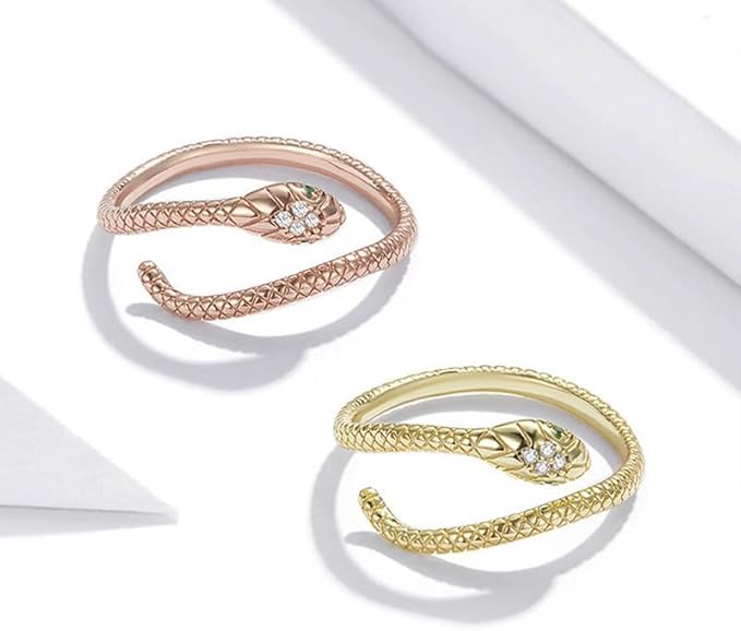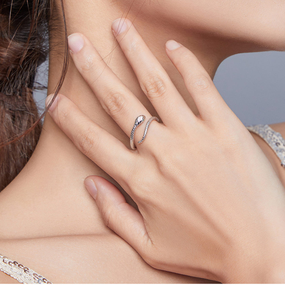 Rockyu スネークリング S925シルバー 蛇モチーフ レディース指輪 フリーサイズ