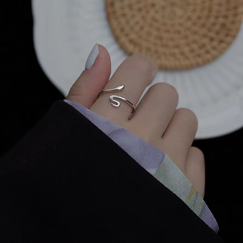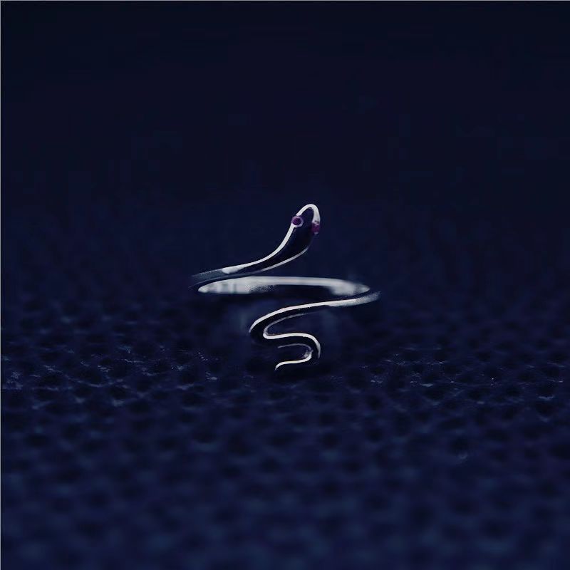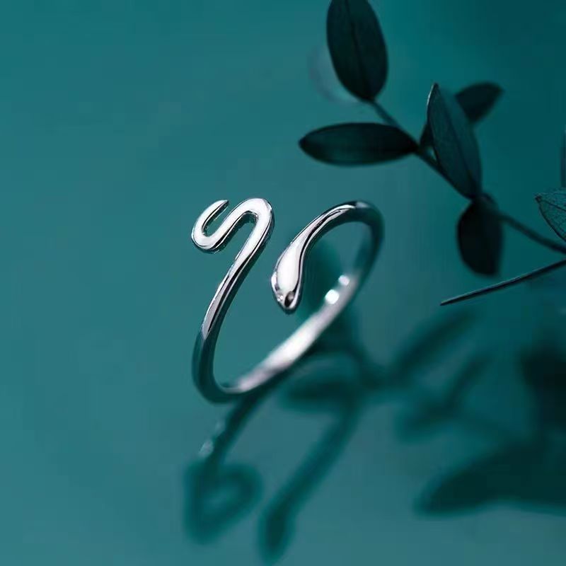 Rockyu スネークリング レディース シルバー925 フリーサイズ 蛇モチーフリング