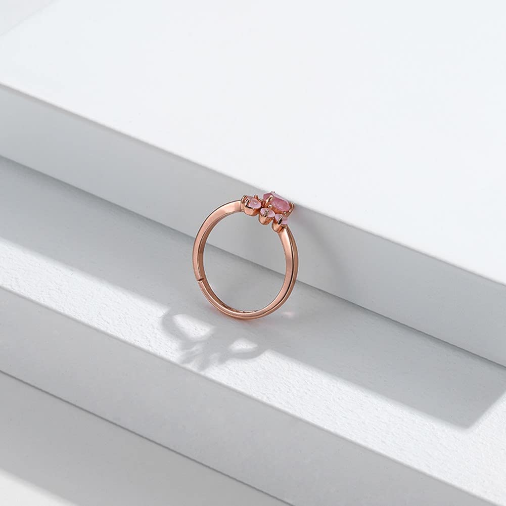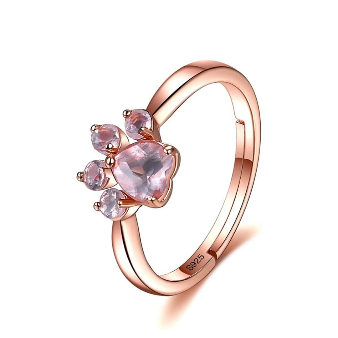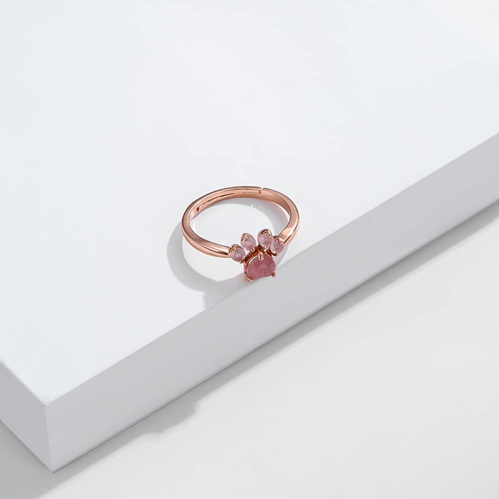 Rockyu 肉球リング レディース シルバー925 天然石 ピンクゴールド フリーサイズ 指輪