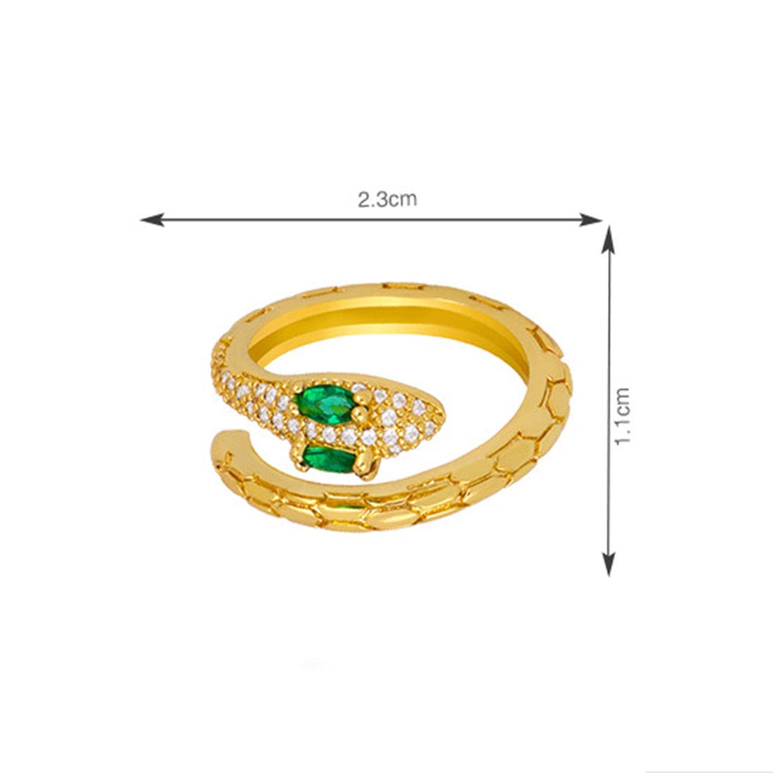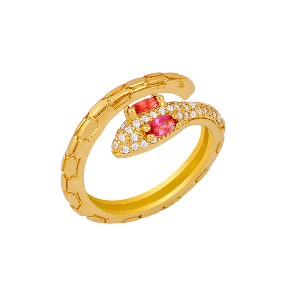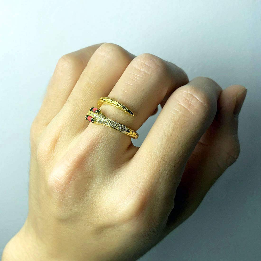 Rockyu 指輪 レディース 蛇モチーフ フリーサイズ CZダイヤ ゴールドリング