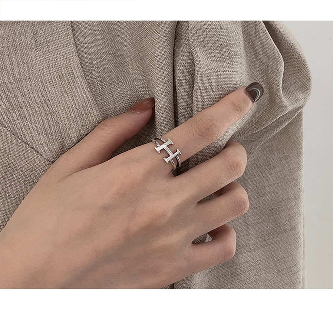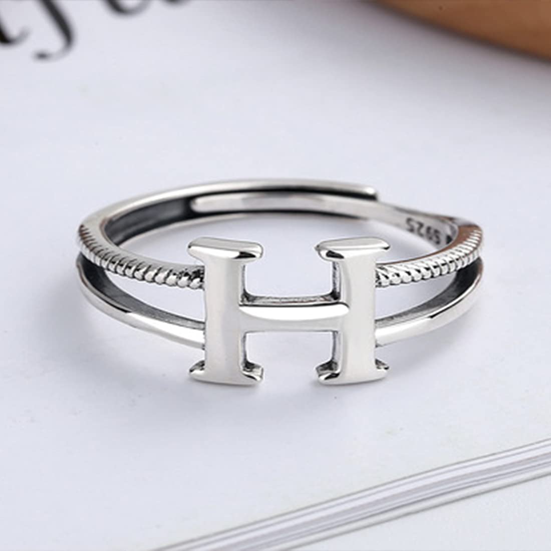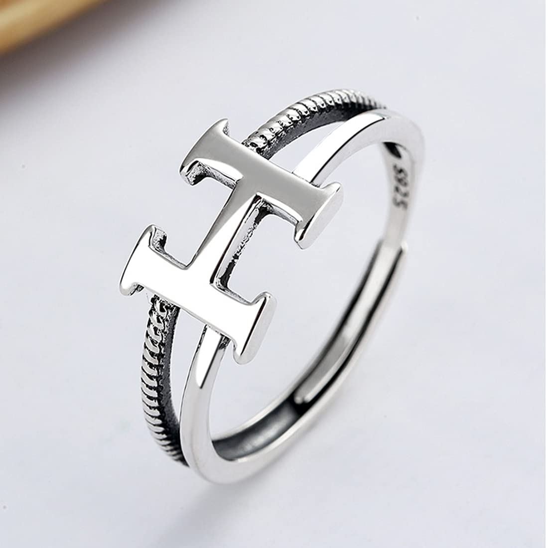 Rockyu Hモチーフリング レディース フリーサイズ シルバー925 調節可能 指輪