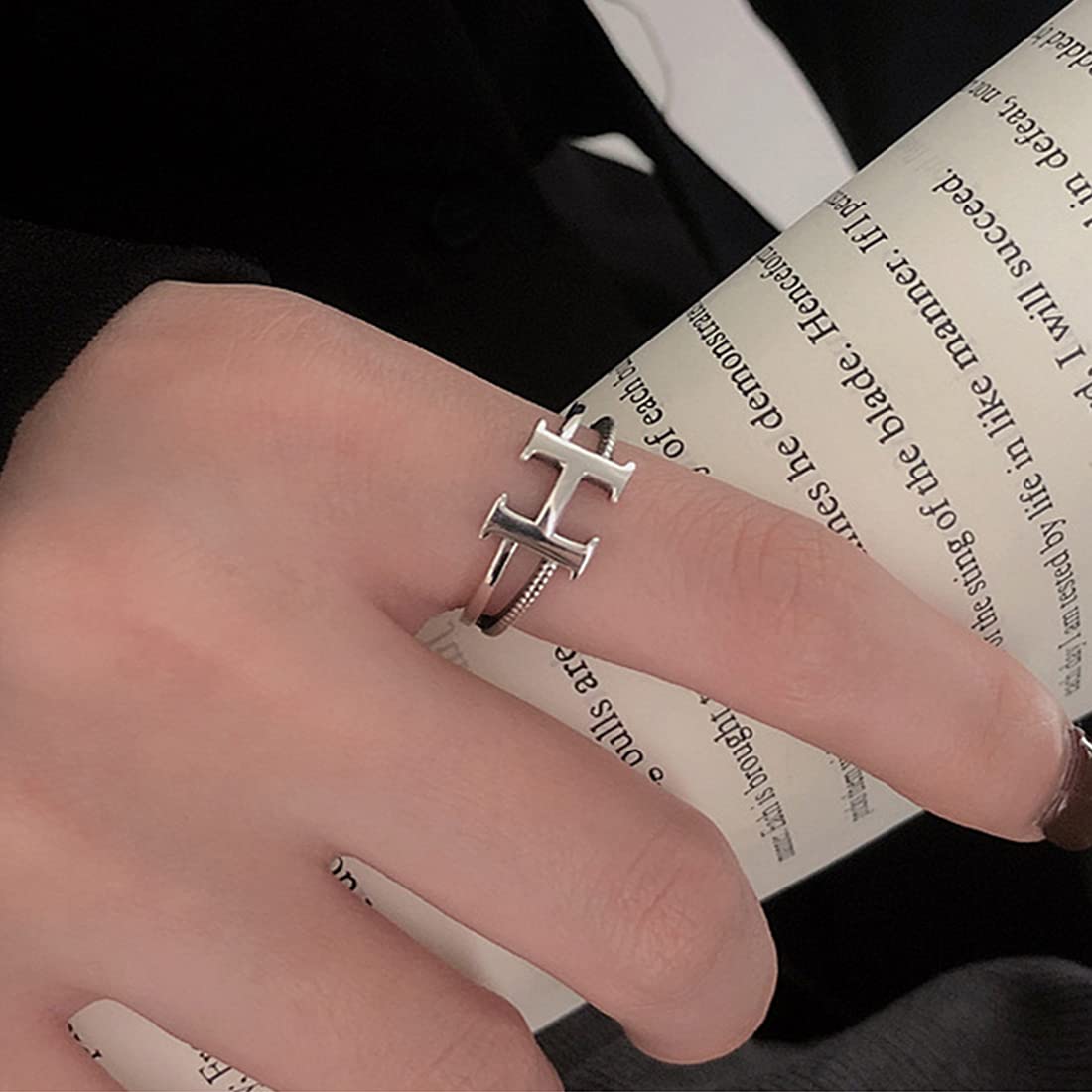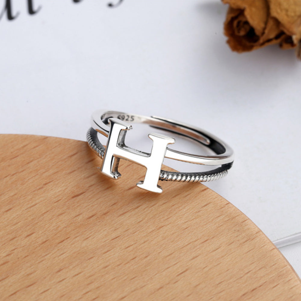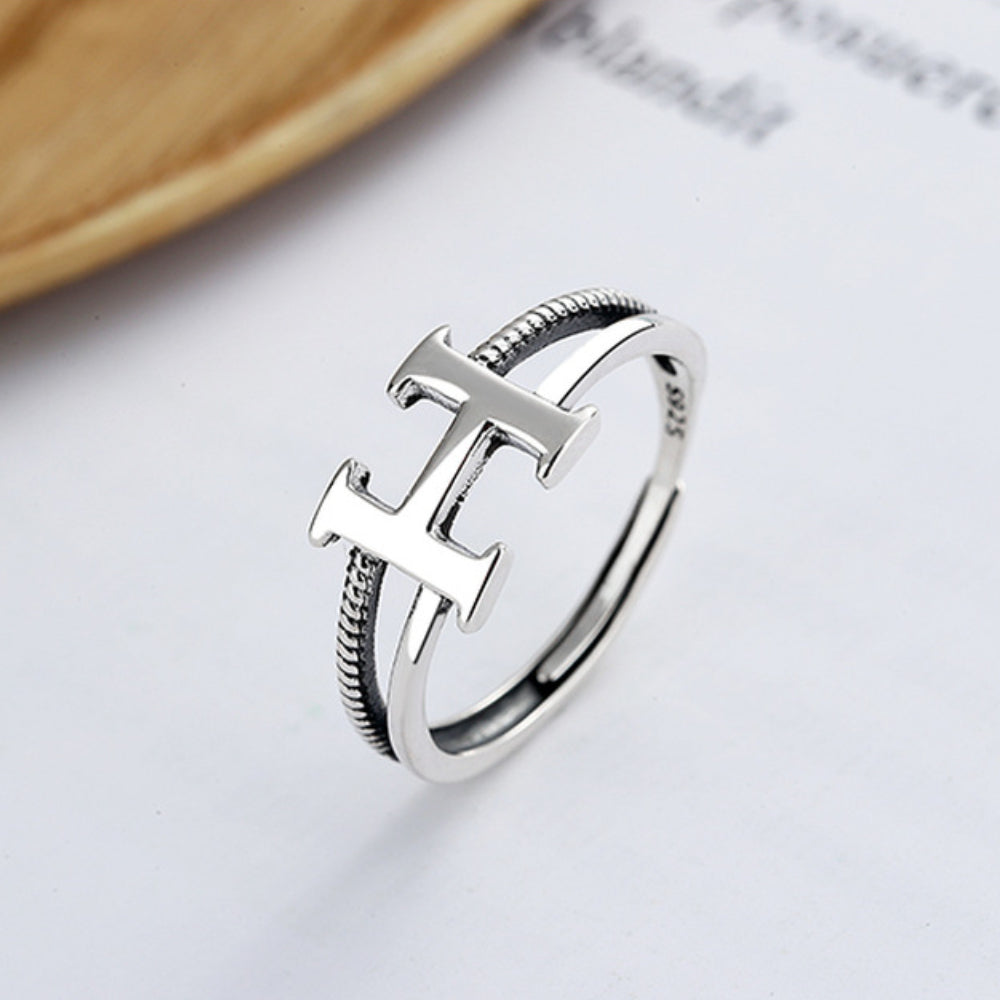Rockyu Hモチーフリング レディース フリーサイズ シルバー925 調節可能 指輪