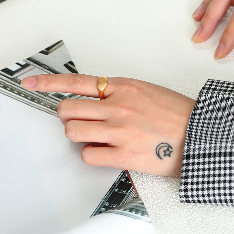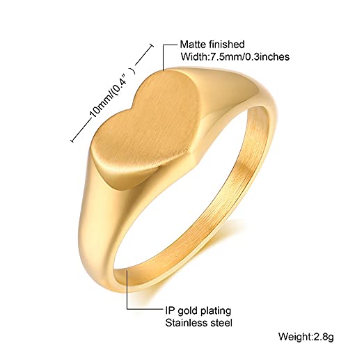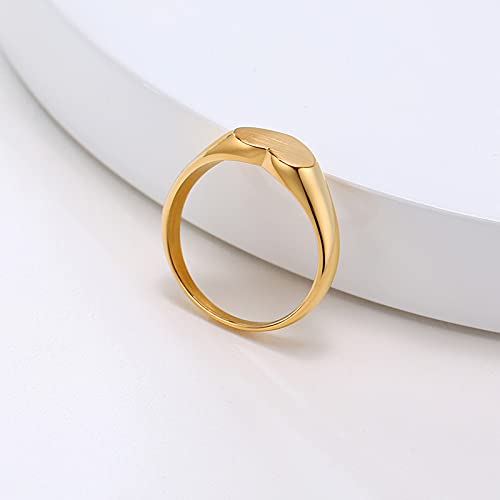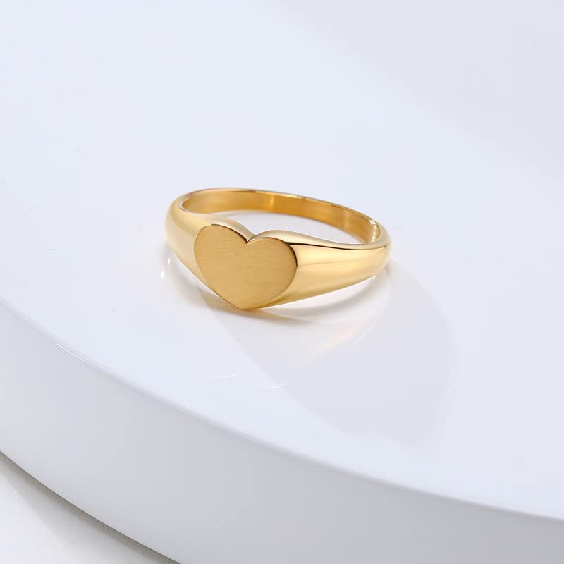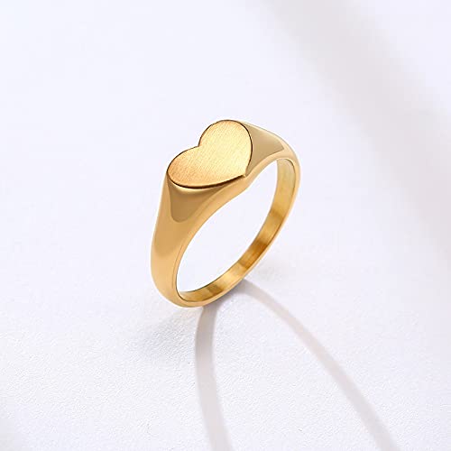 Rockyu 指輪 レディース メンズ ゴールド ハートリング ステンレス 印台デザイン おしゃれ 18金コーティング