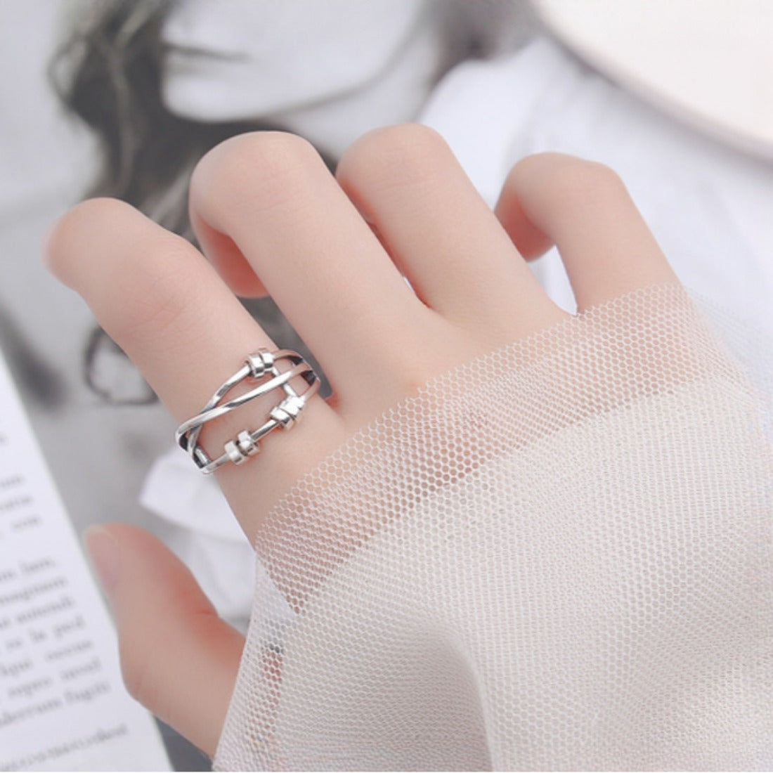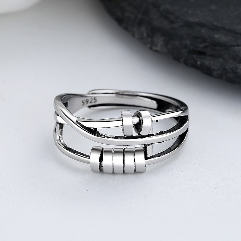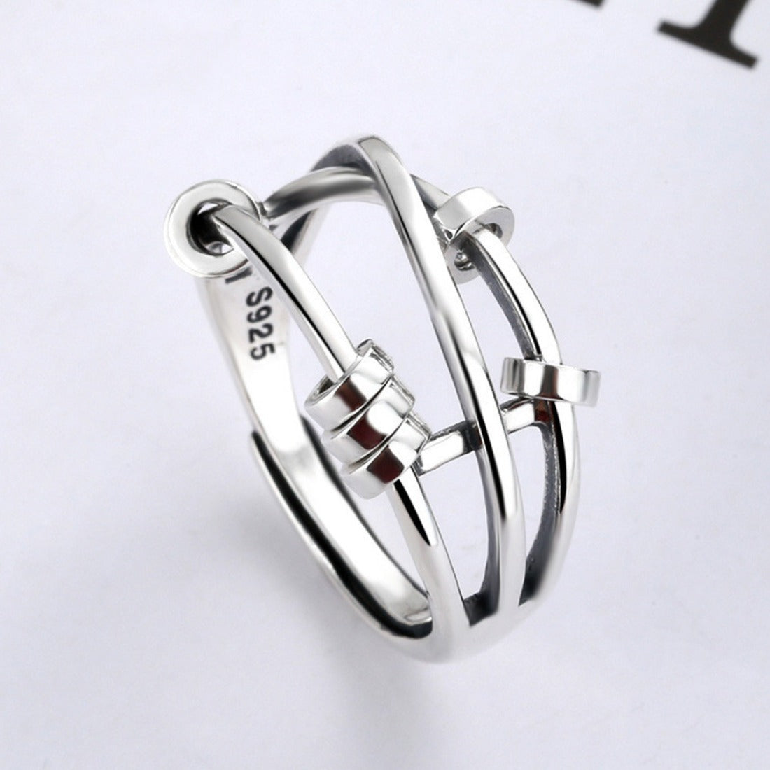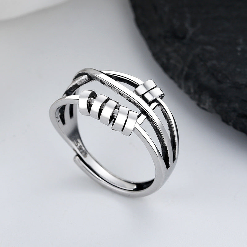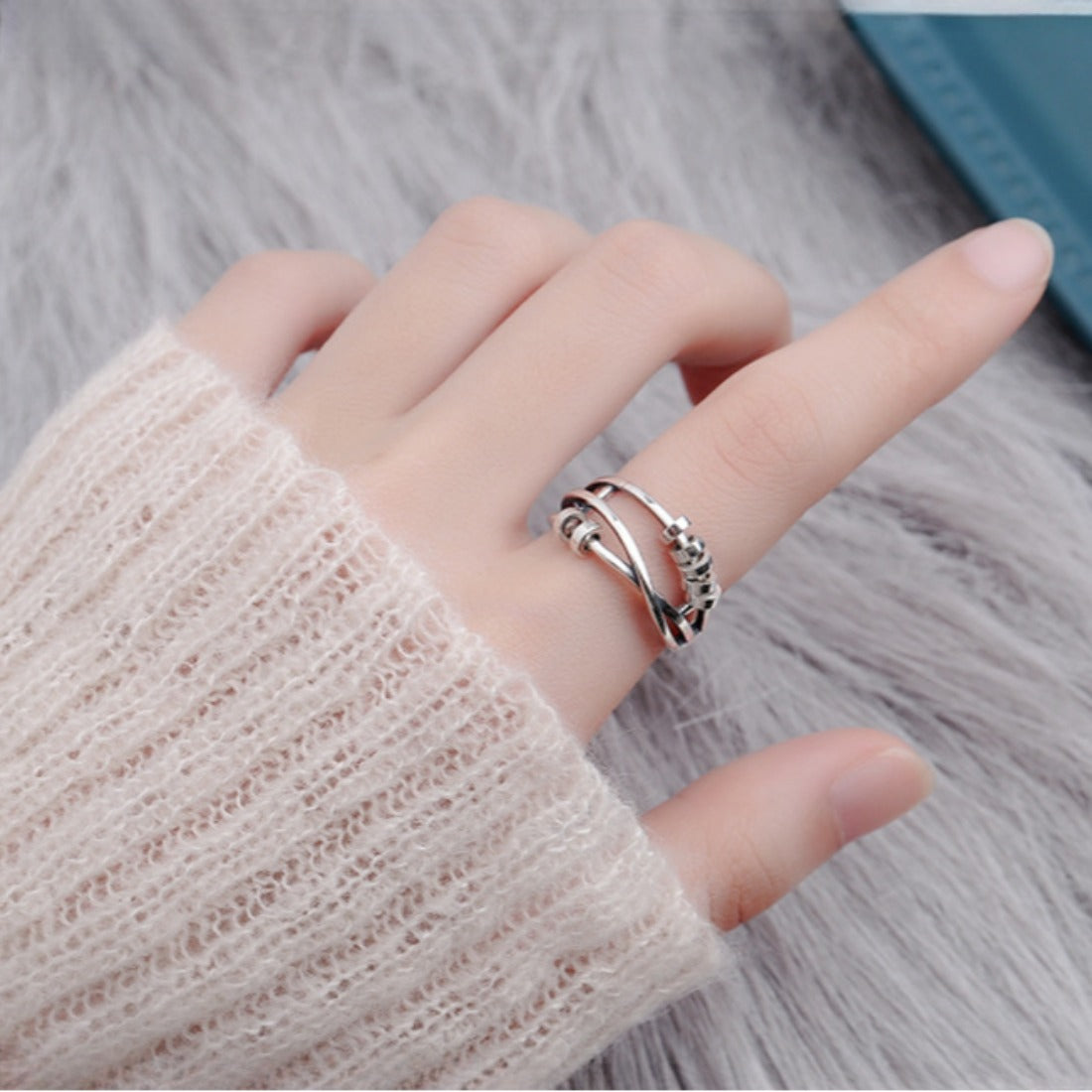 Rockyu フリーサイズ回転リング レディース S925シルバー ストレス軽減リング 個性的デザイン