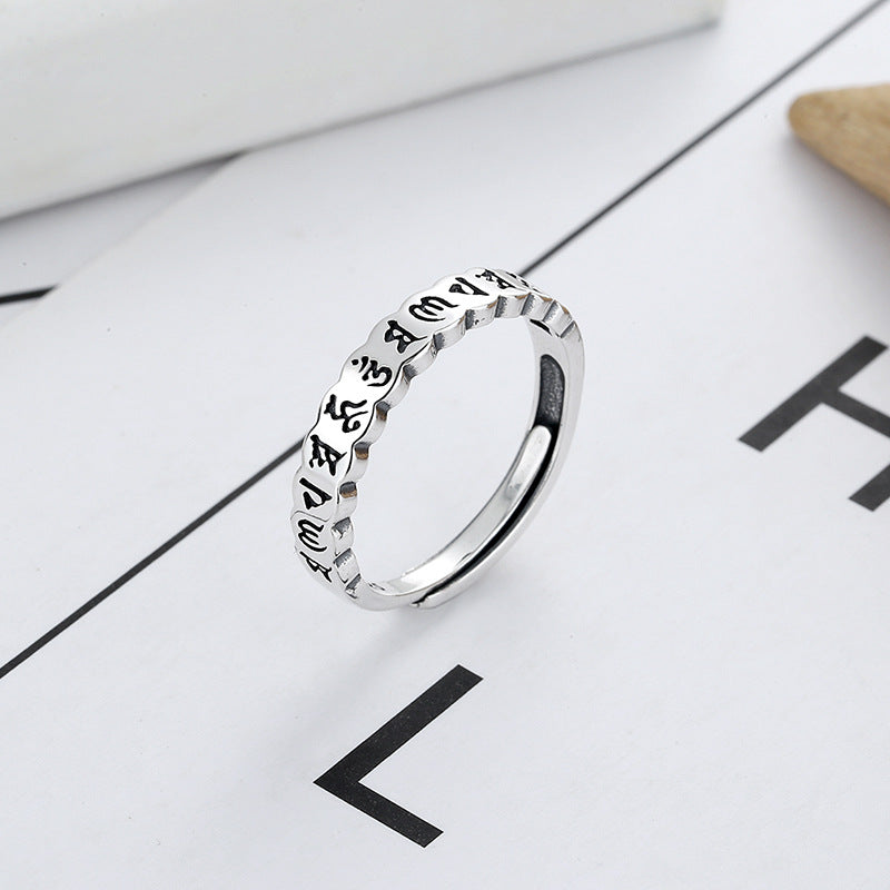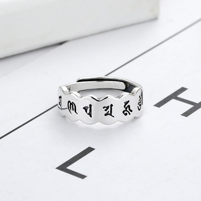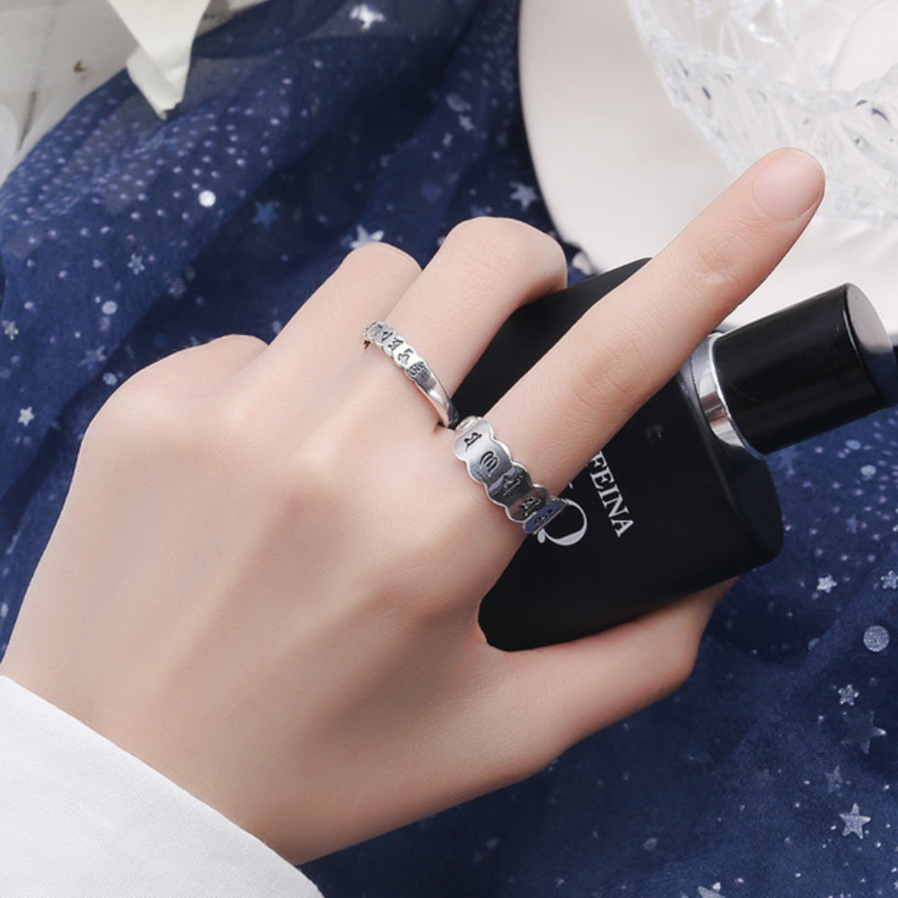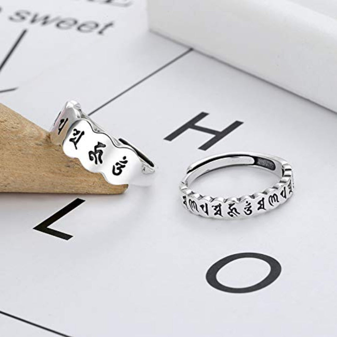Rockyu 六字真言シルバーリング ペア対応 s925 開運守護 フリーサイズ