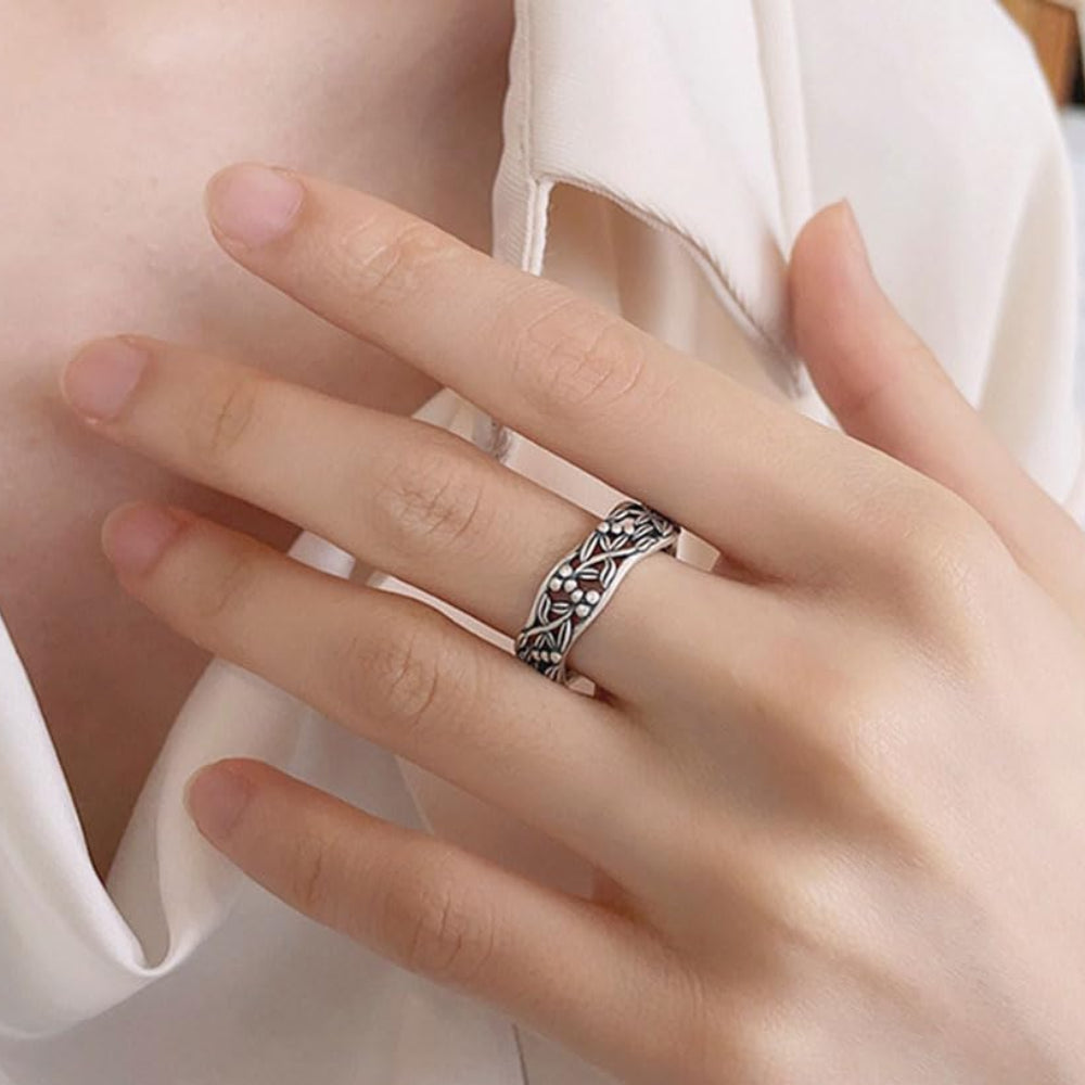 自然の美しさをそのまま指先に閉じ込めたような、Rockyuのシルバー925藤蔓モチーフリング。繊細な透かし彫りで表現された藤蔓と葉、花のデザインが、軽やかで上品な印象を与えます。太めのフォルムながらも柔らかな曲線が指に馴染み、存在感と女性らしさを両立。フリーサイズ仕様でサイズ調整が簡単、金属アレルギー対応のシルバー925素材を使用しているため、肌にも優しく長時間の着用も快適です。ナチュラルな植物モチーフは日常のコーディネートに溶け込みながら、さりげないおしゃれ感をプラス。自分用にはもちろん、誕生日や記念日の贈り物としても喜ばれる逸品です。