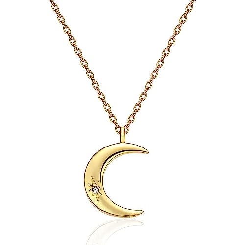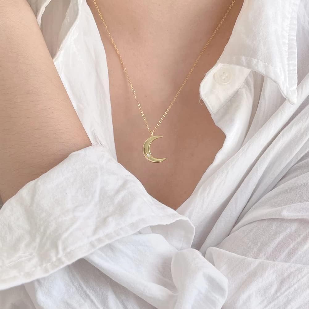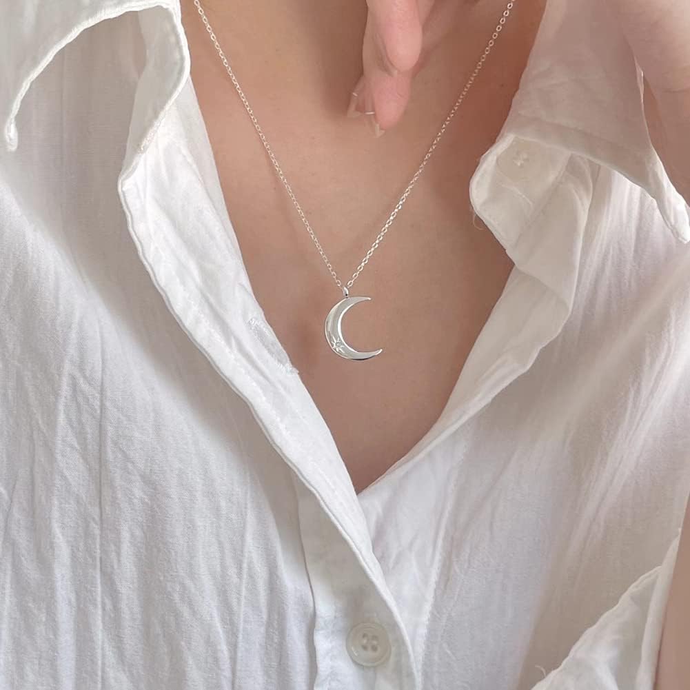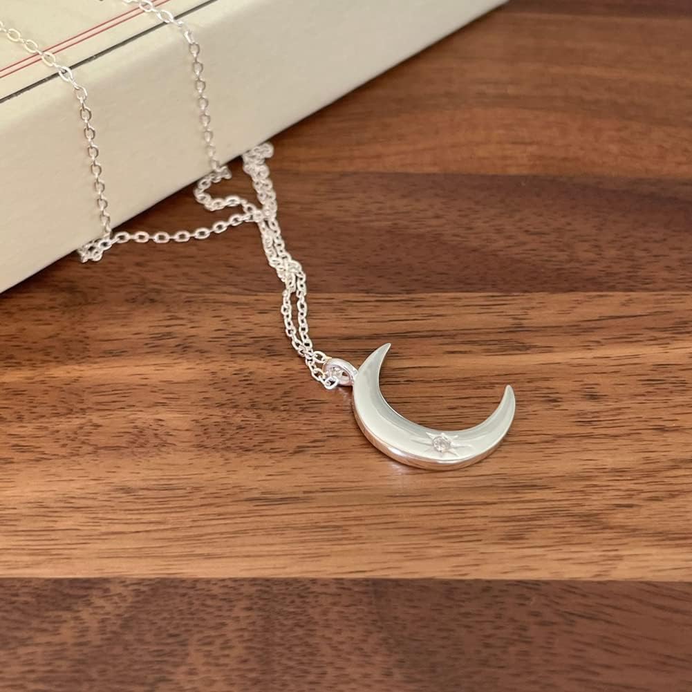 Rockyu 月ネックレス レディース シルバー925 三日月ペンダント ジルコニア入り 可愛いデザイン