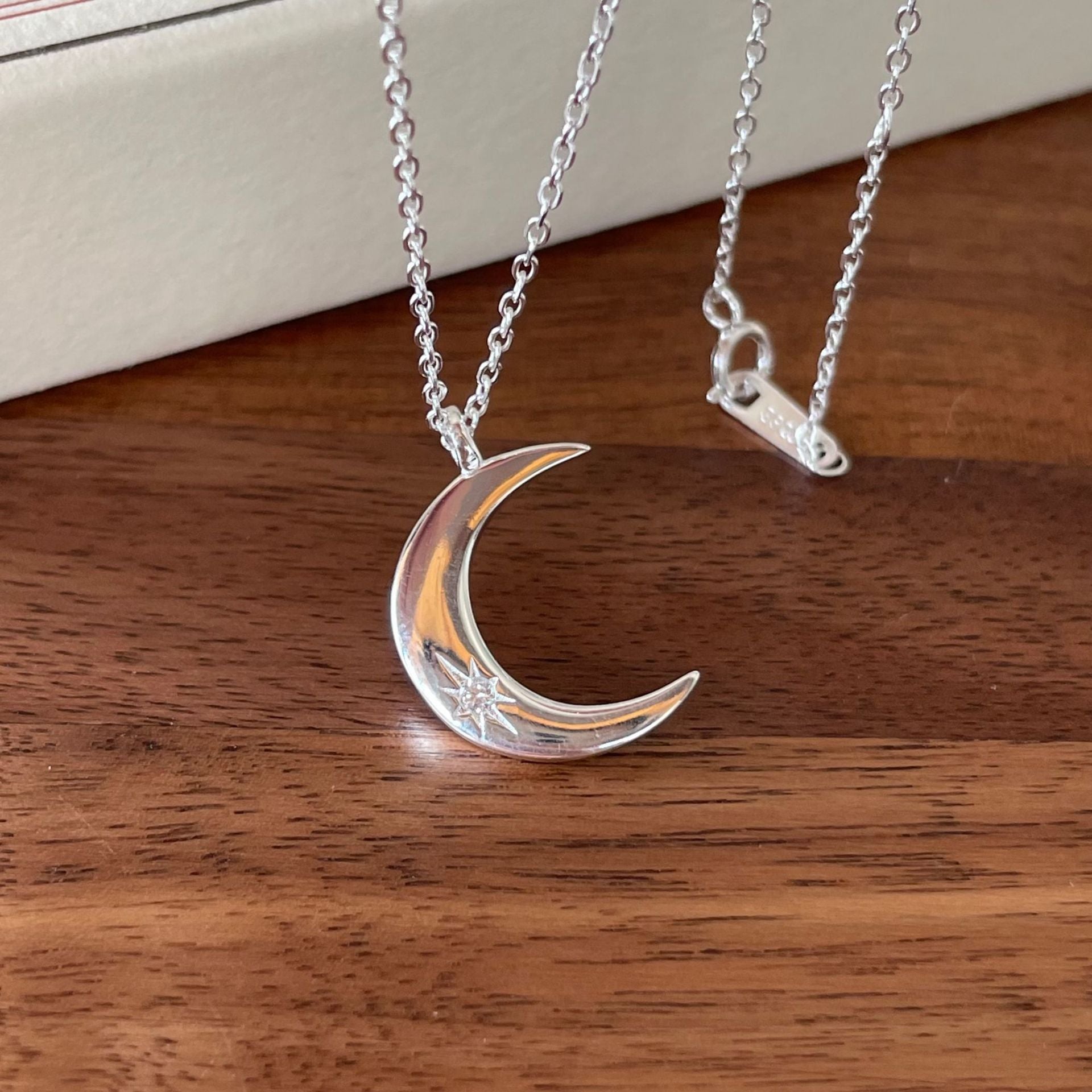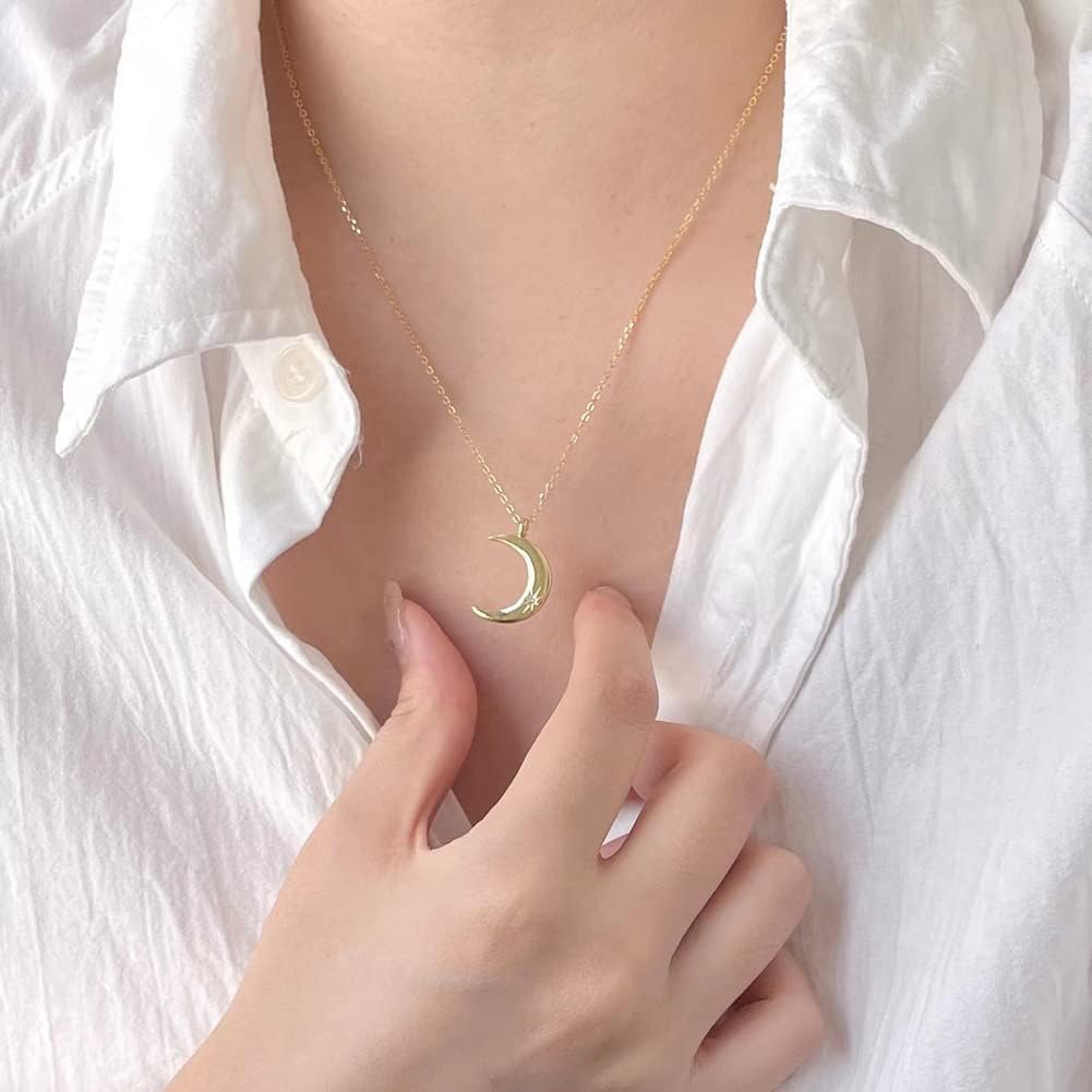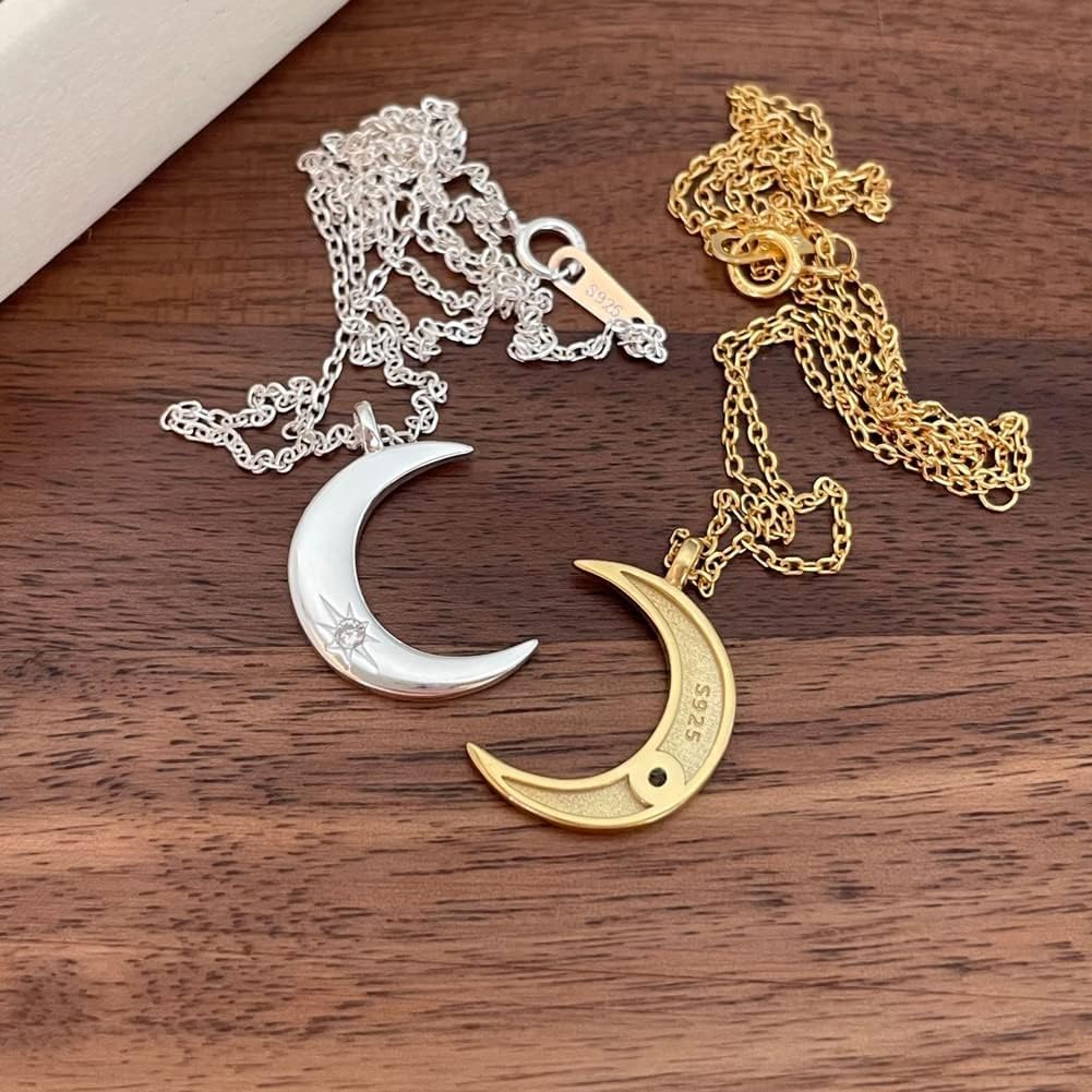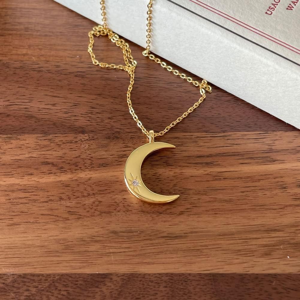 Rockyu 月ネックレス レディース シルバー925 三日月ペンダント ジルコニア入り 可愛いデザイン