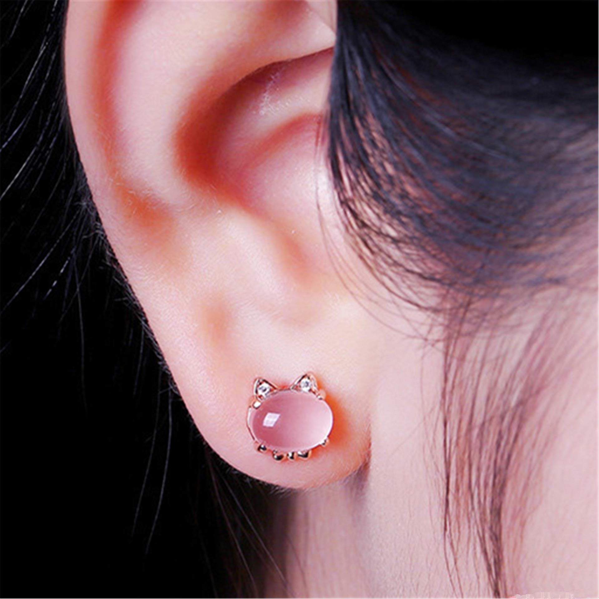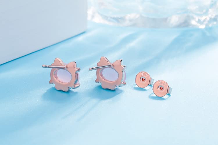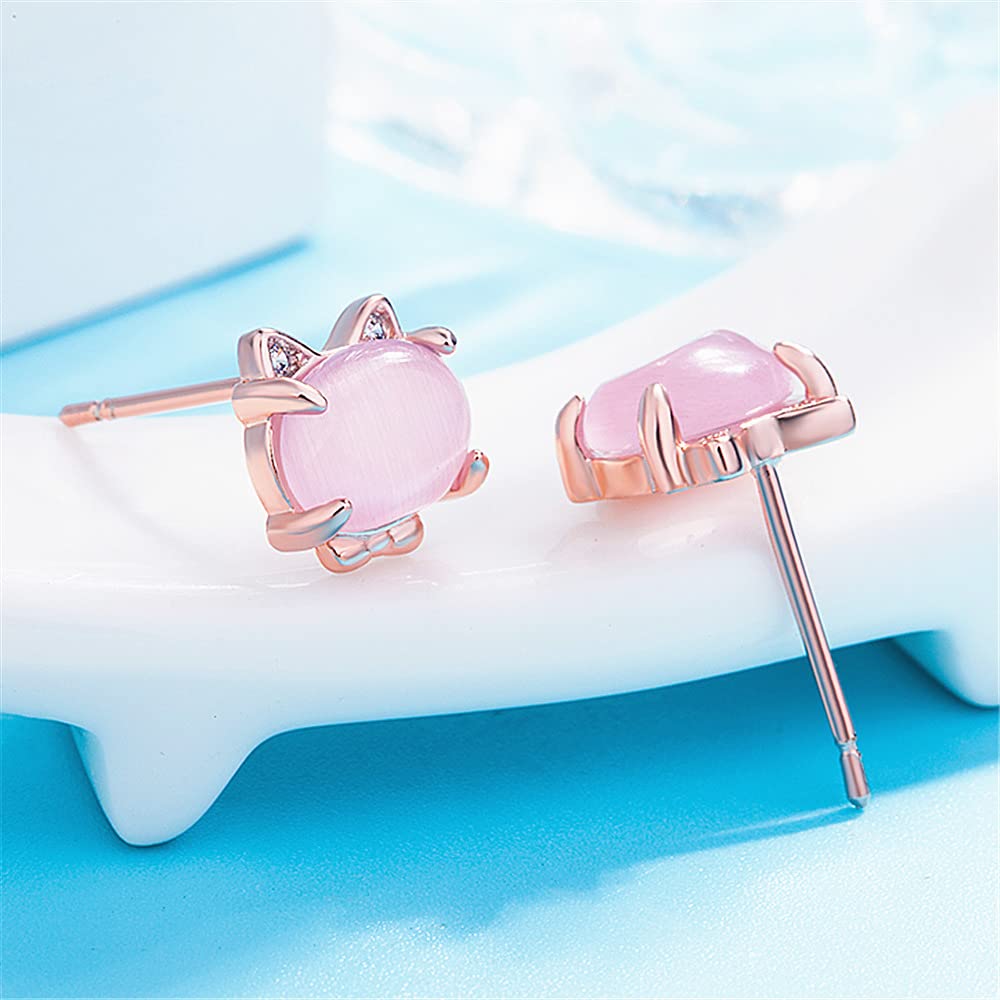 Rockyu レディース ピアス 猫耳 キャッツアイ シルバー925 18金仕上げ 小さい スタッド 可愛い