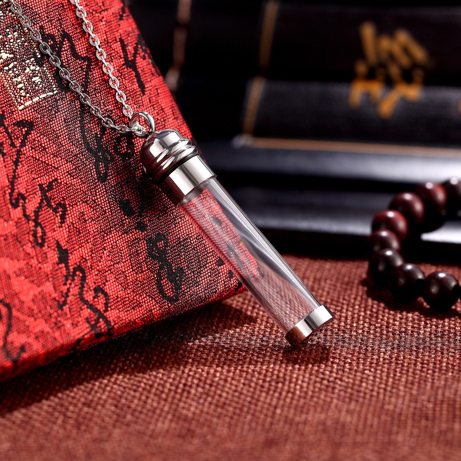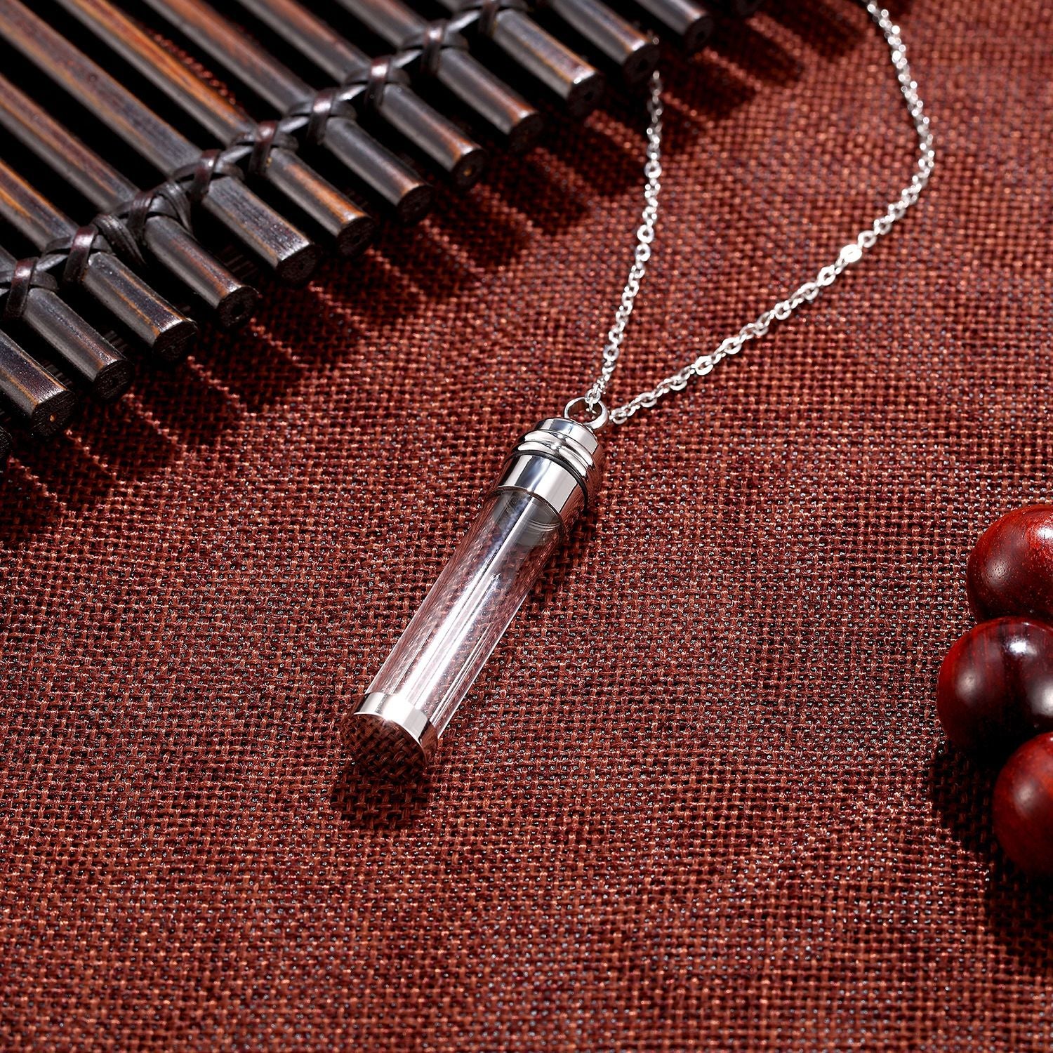 Rockyu メモリアルネックレス ガラス製 香水瓶型ペンダント ステンレス製 遺骨入れ