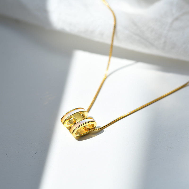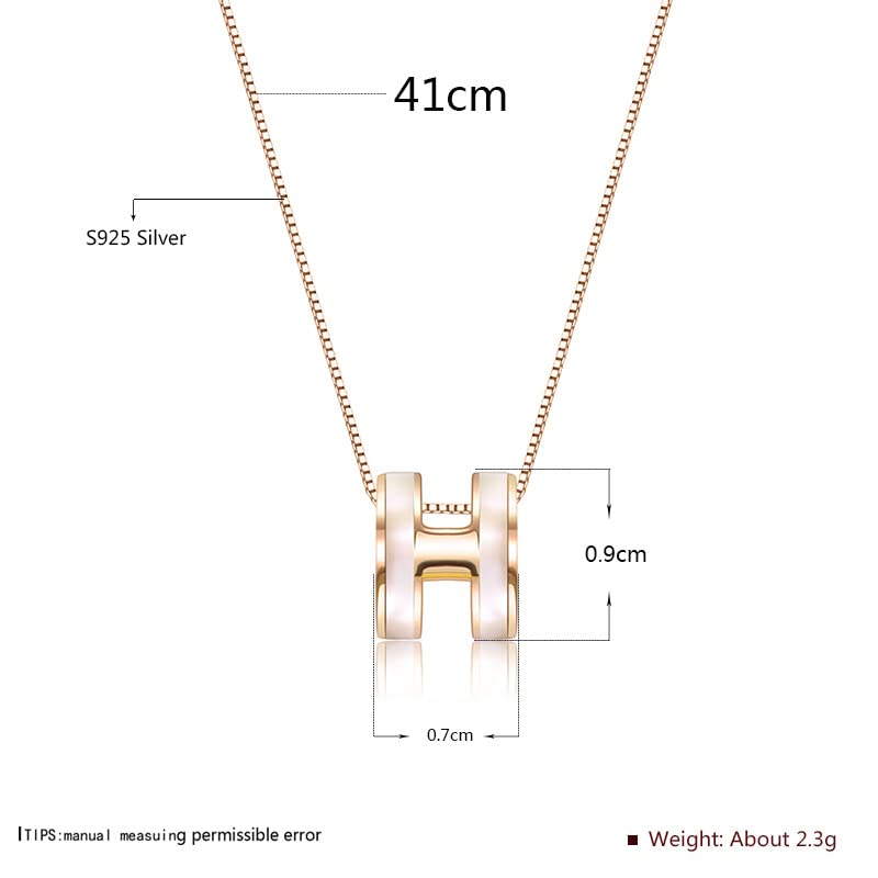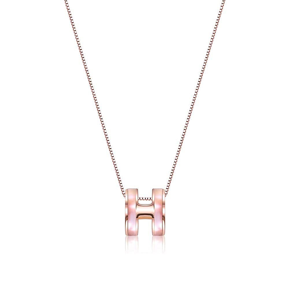 Rockyu レディース Hモチーフネックレス ピンクゴールド&ホワイト 白蝶貝 S925銀