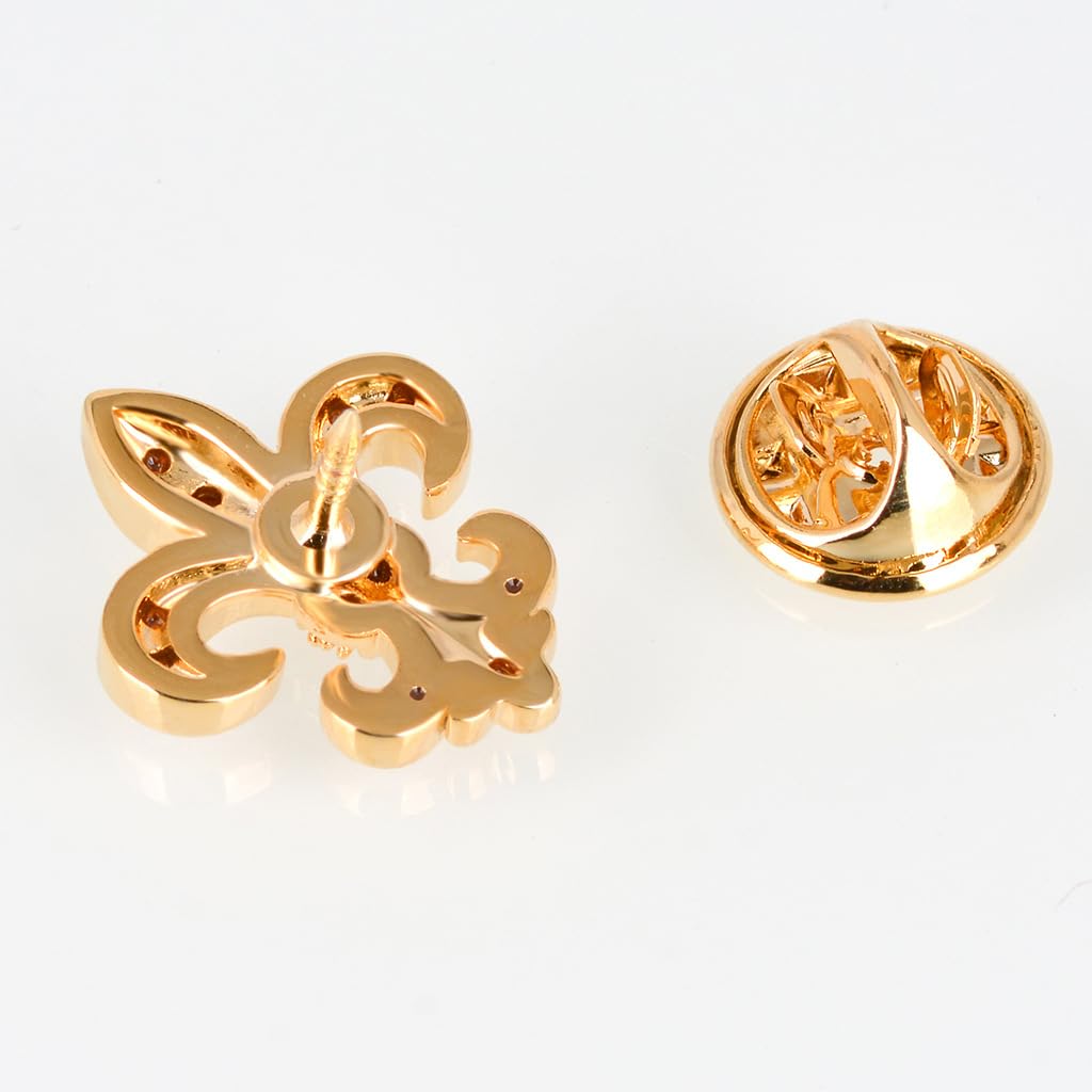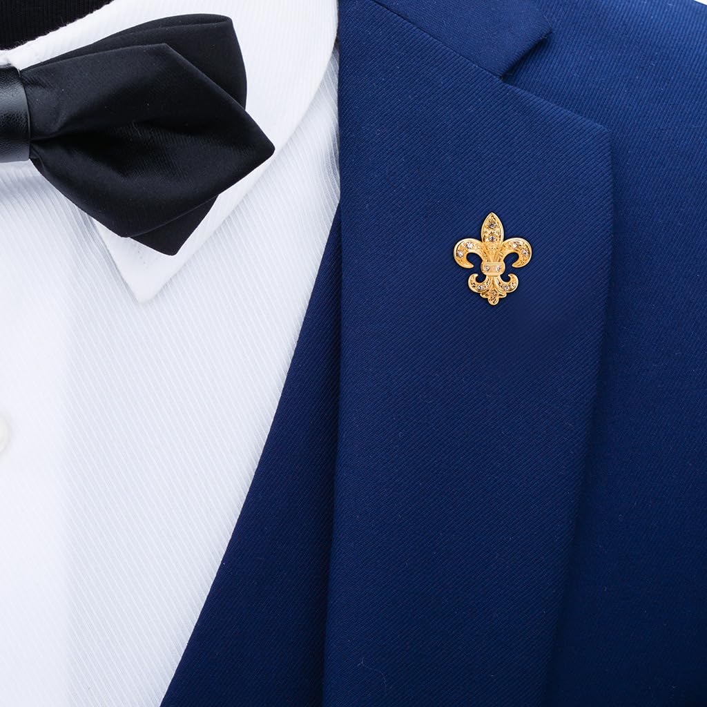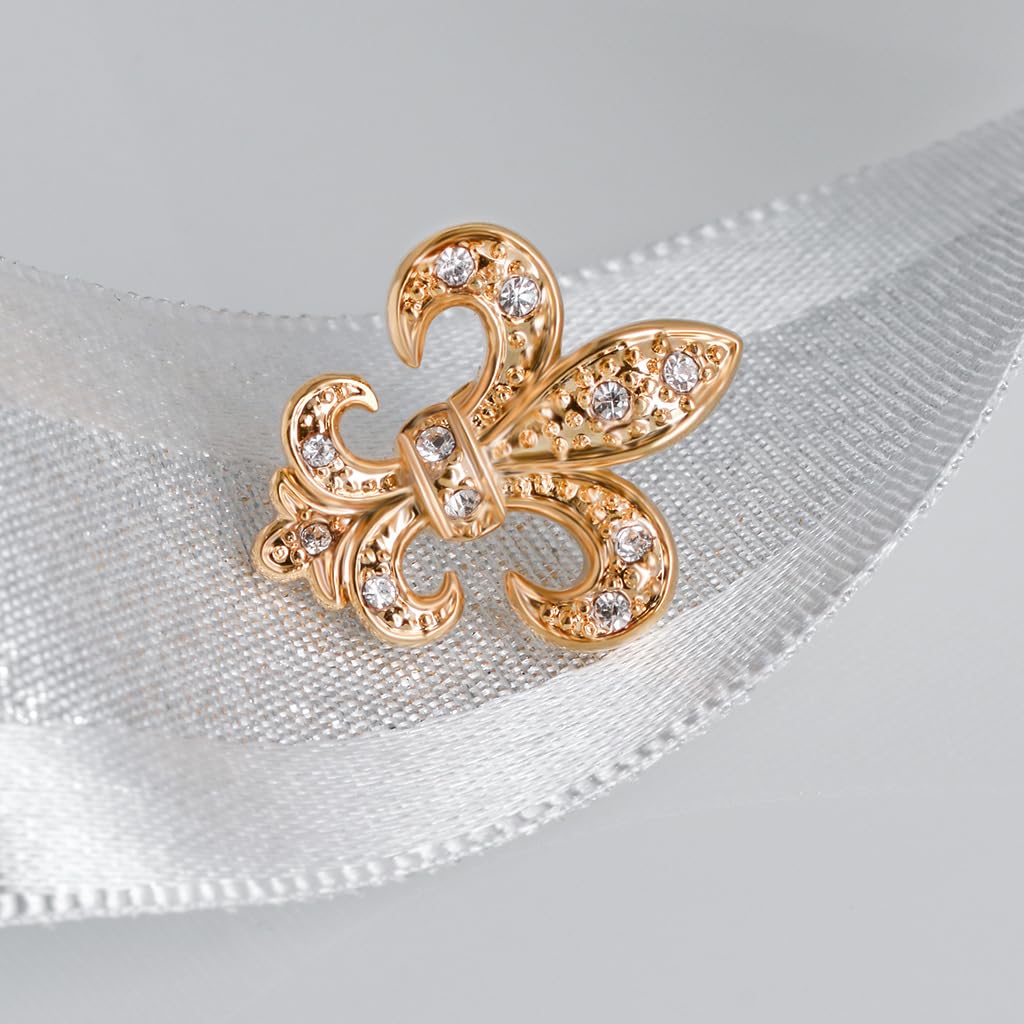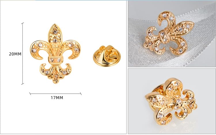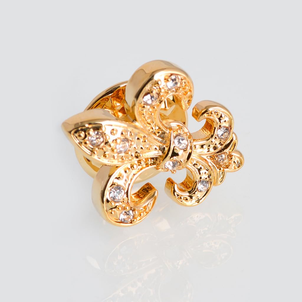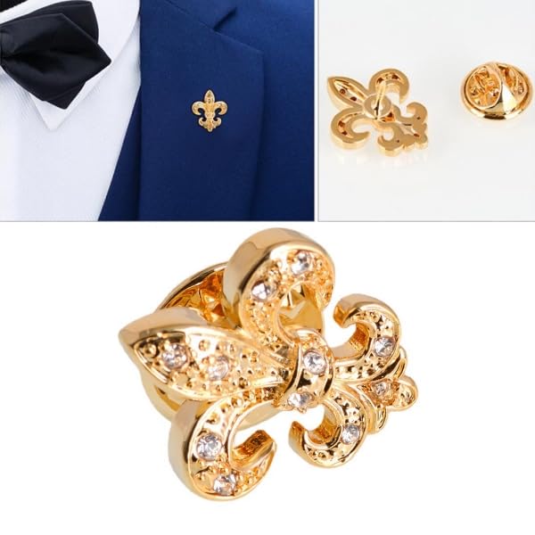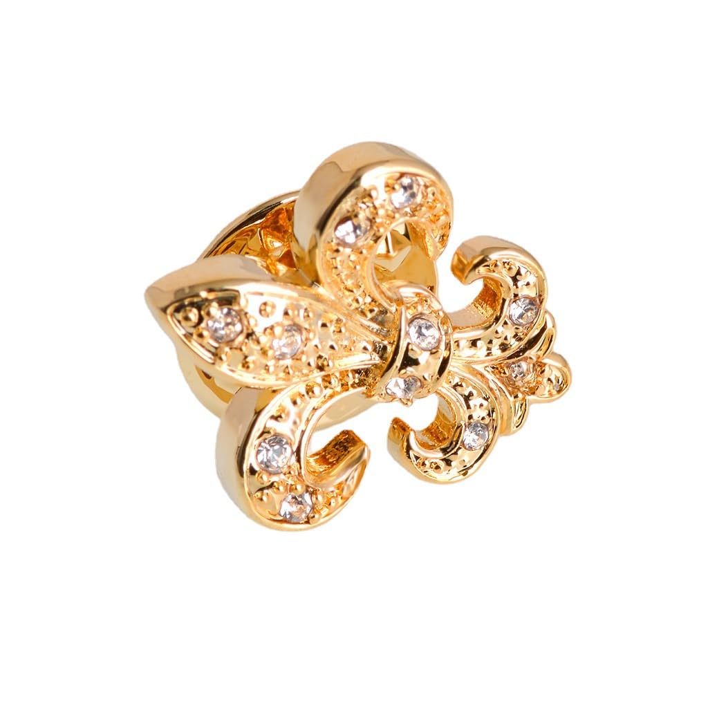 Rockyu メンズ ピンブローチ ゴールド 百合の花 ステンレス クリスタル