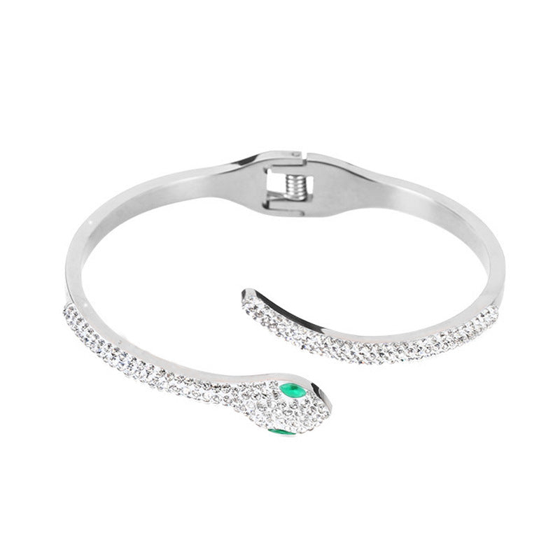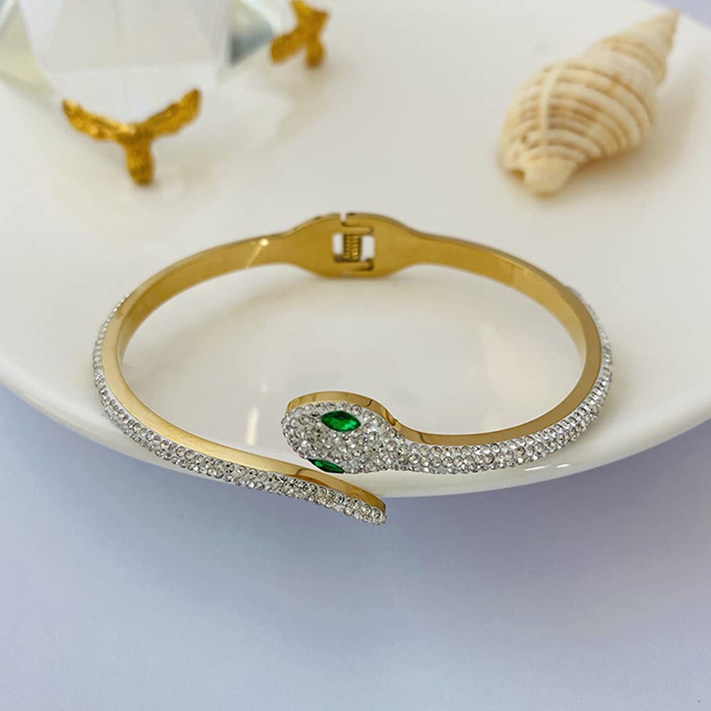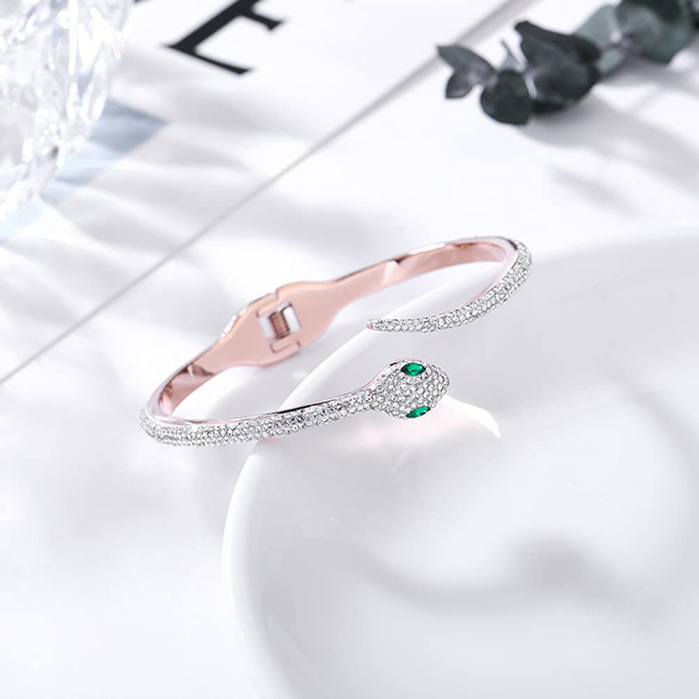 Rockyu 蛇形ブレスレット レディース 18K仕上げ ジルコニア 純チタン製