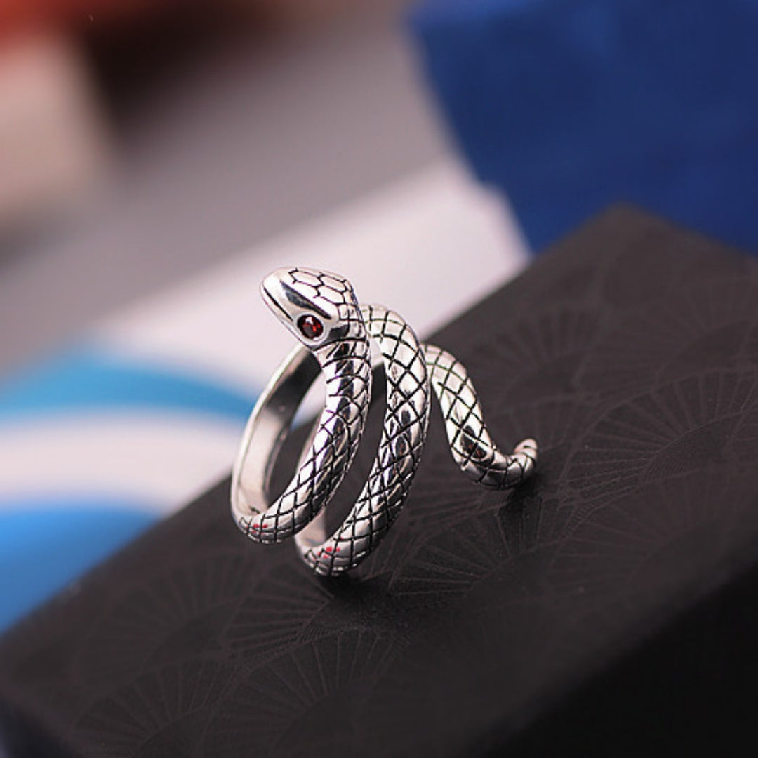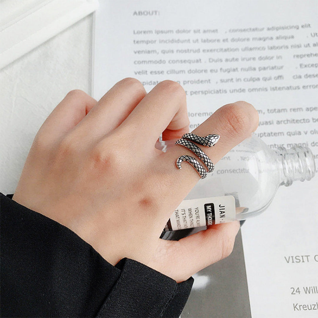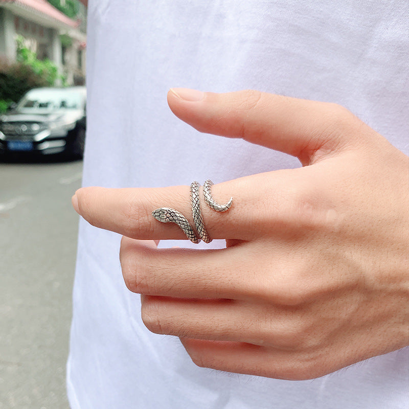 Rockyu 蛇形シルバーリング|開口デザインの個性派ヴィンテージ指輪