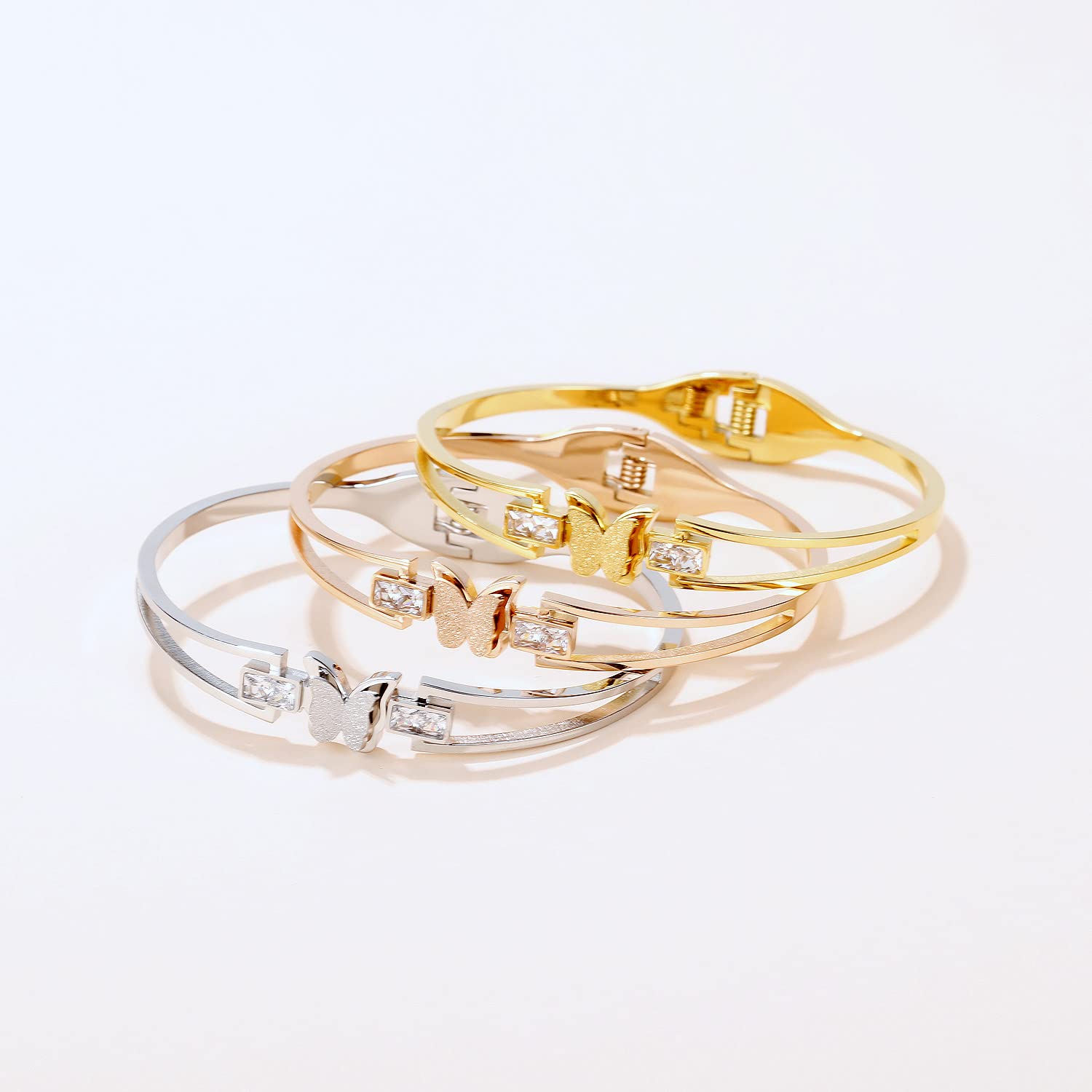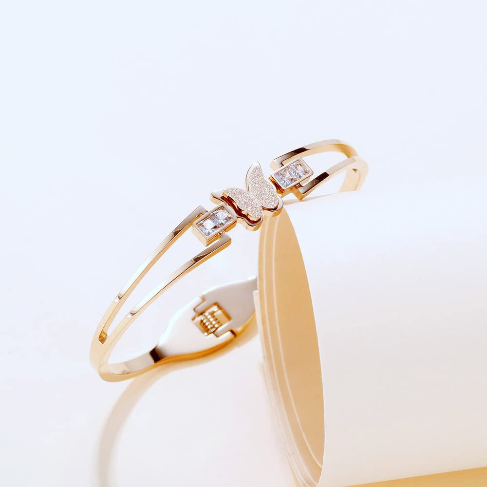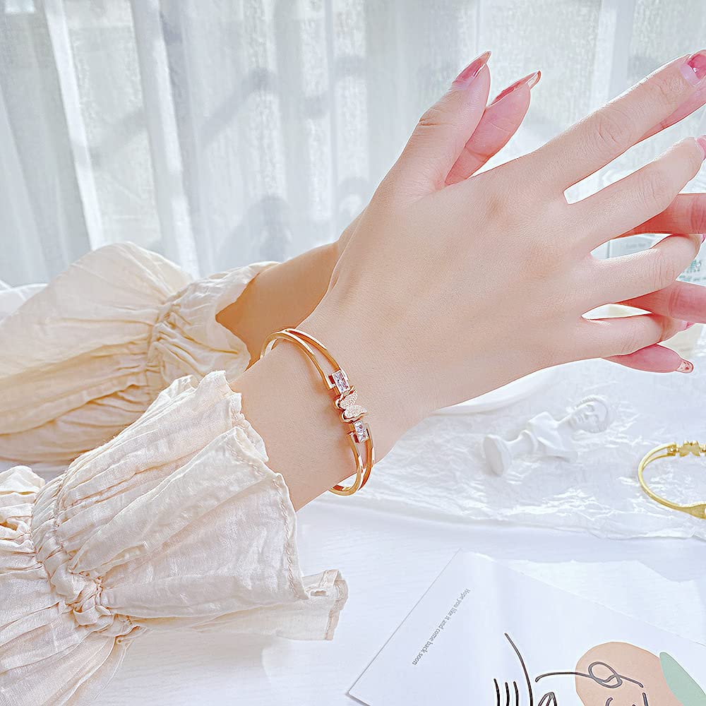 Rockyu レディース ブレスレット バタフライ バングル ピンクゴールド ジルコニア 金属アレルギー対応