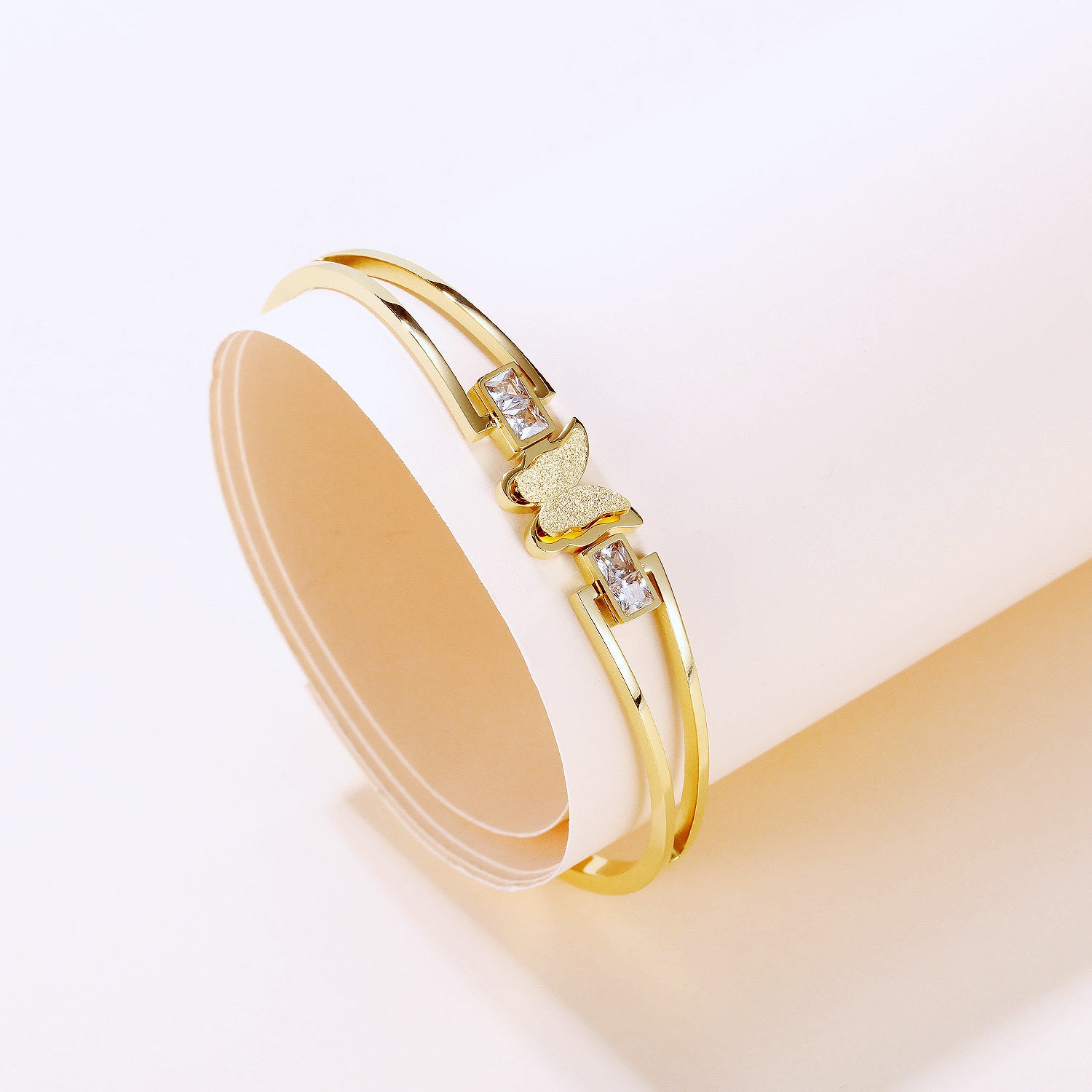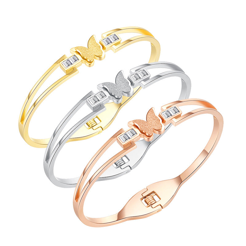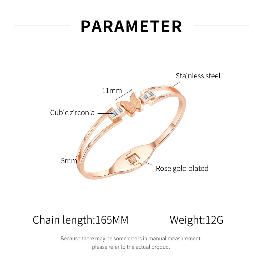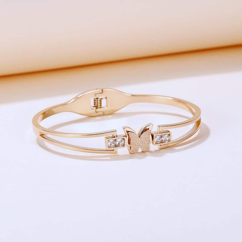 Rockyu レディース ブレスレット バタフライ バングル ピンクゴールド ジルコニア 金属アレルギー対応