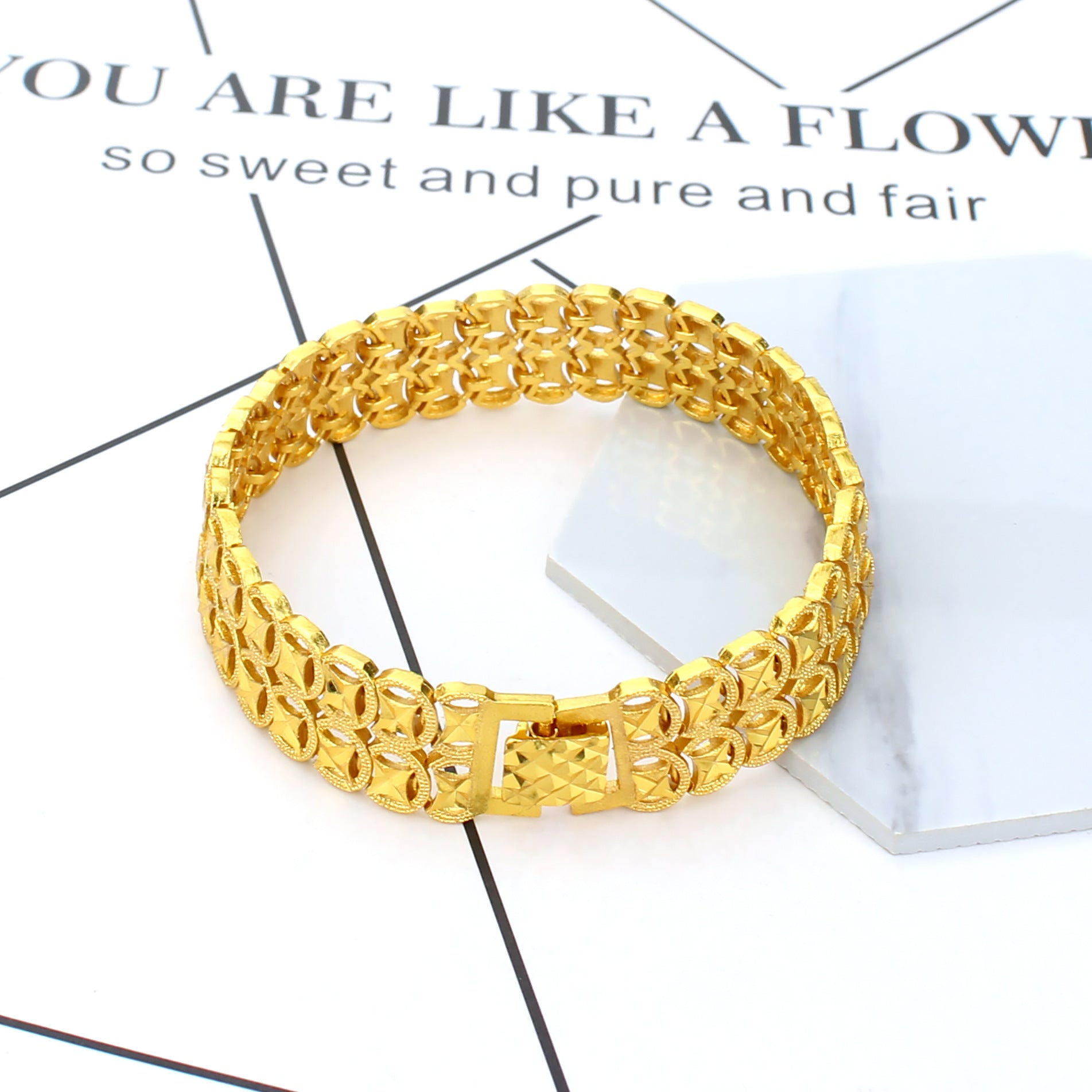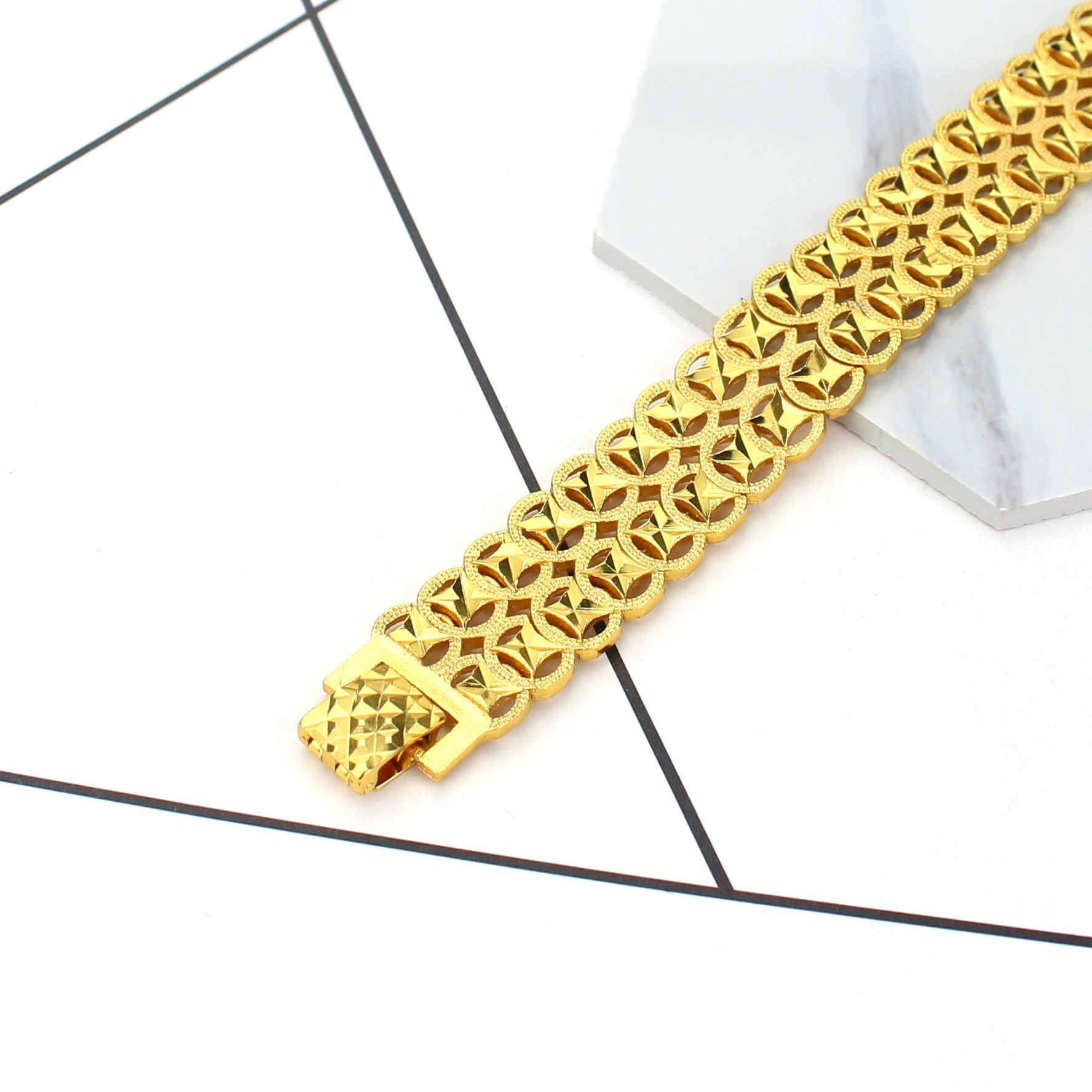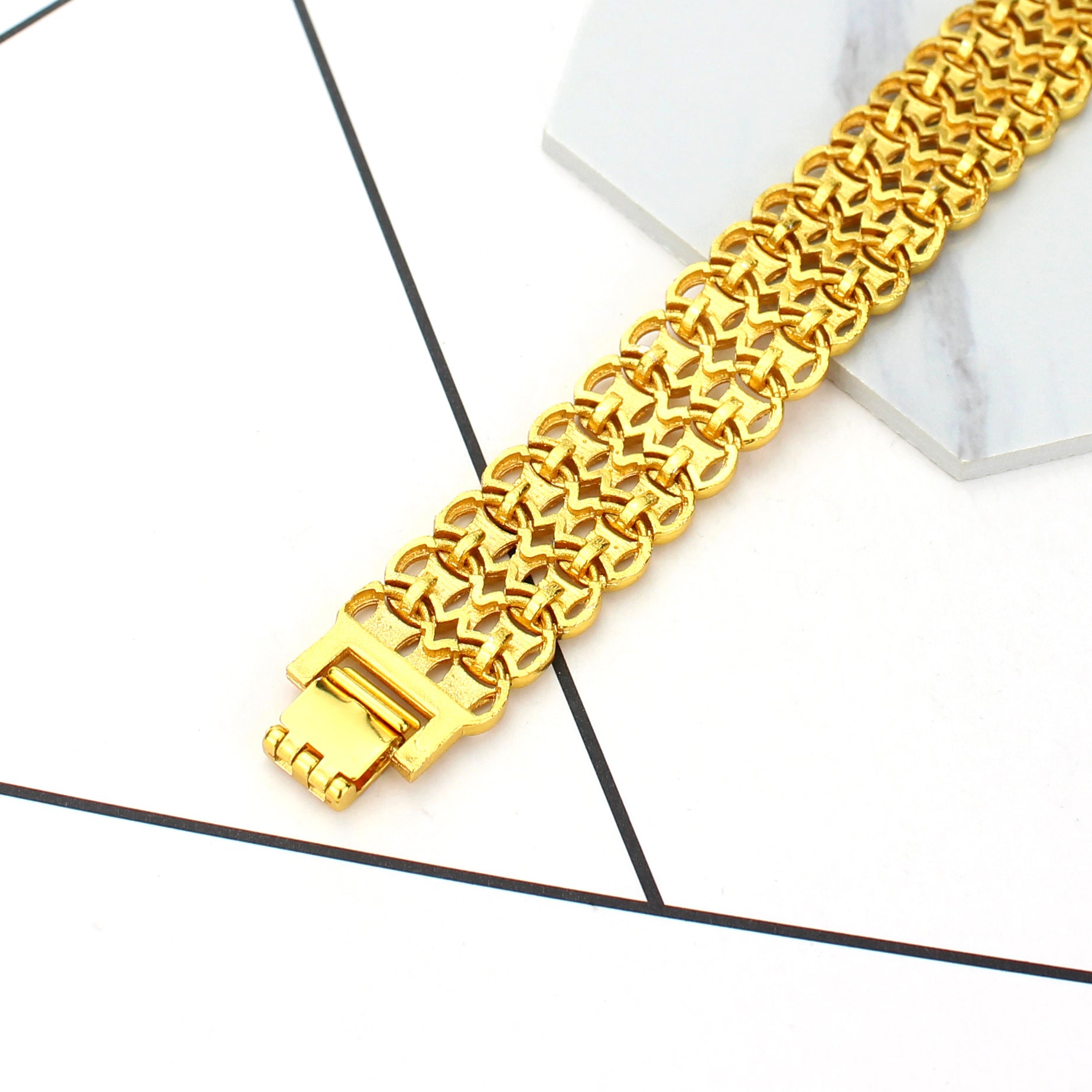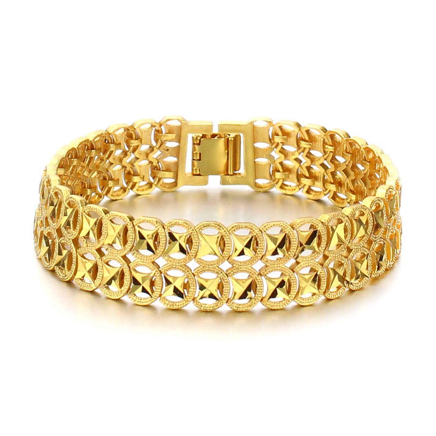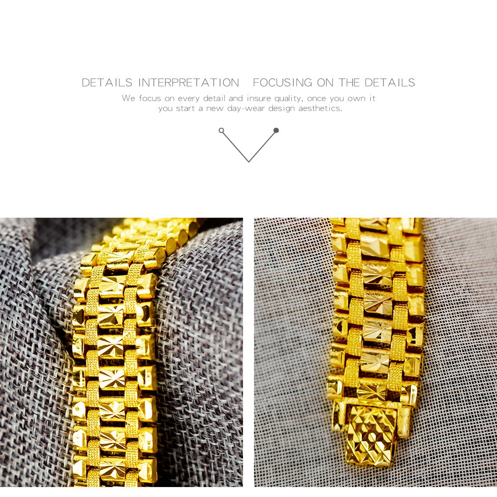 Rockyu 18Kゴールドプレート 幅広メンズブレスレット ステンレス風 豪華デザイン