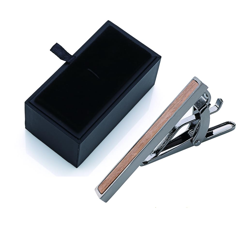 洗練されたデザインと天然木の温もりが融合した、高級感あふれる木製ネクタイピン。ビジネスシーンやフォーマルな場にぴったりの一品。カラーは3色(ゴールド、ローズゴールド、ガンメタル)をご用意し、スタイルに合わせてお選びいただけます。
