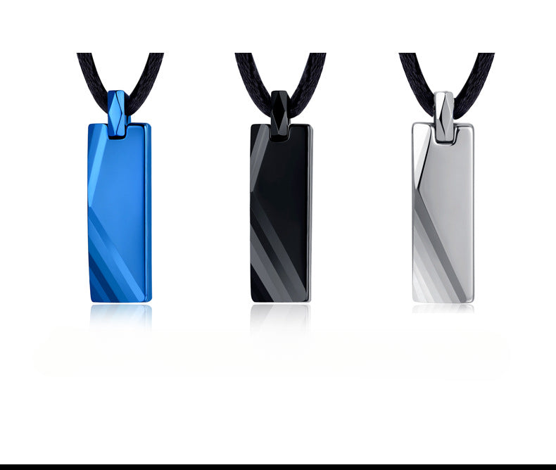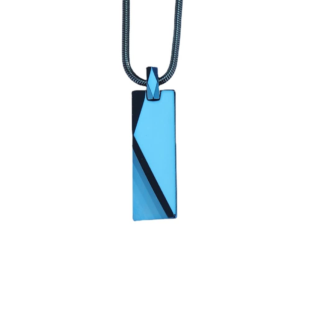 シャープで洗練された一枚のプレートが、男らしさを静かに語る。Rockyuのタングステン製ネックレスは、ミラー仕上げの美しい光沢と、斜めにカットされたデザインが胸元で個性を放つ逸品。カラーは高貴なブルー、定番のブラック、そして気品あるシルバーの3色展開。
